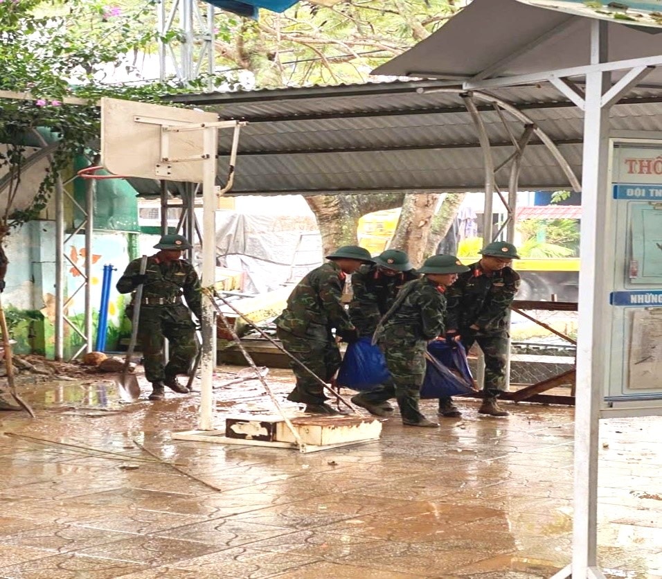 Lực lượng vũ trang Quân khu 7 dọn dẹp vệ sinh giúp các cơ sở giáo dục trên địa bàn xã D'ran