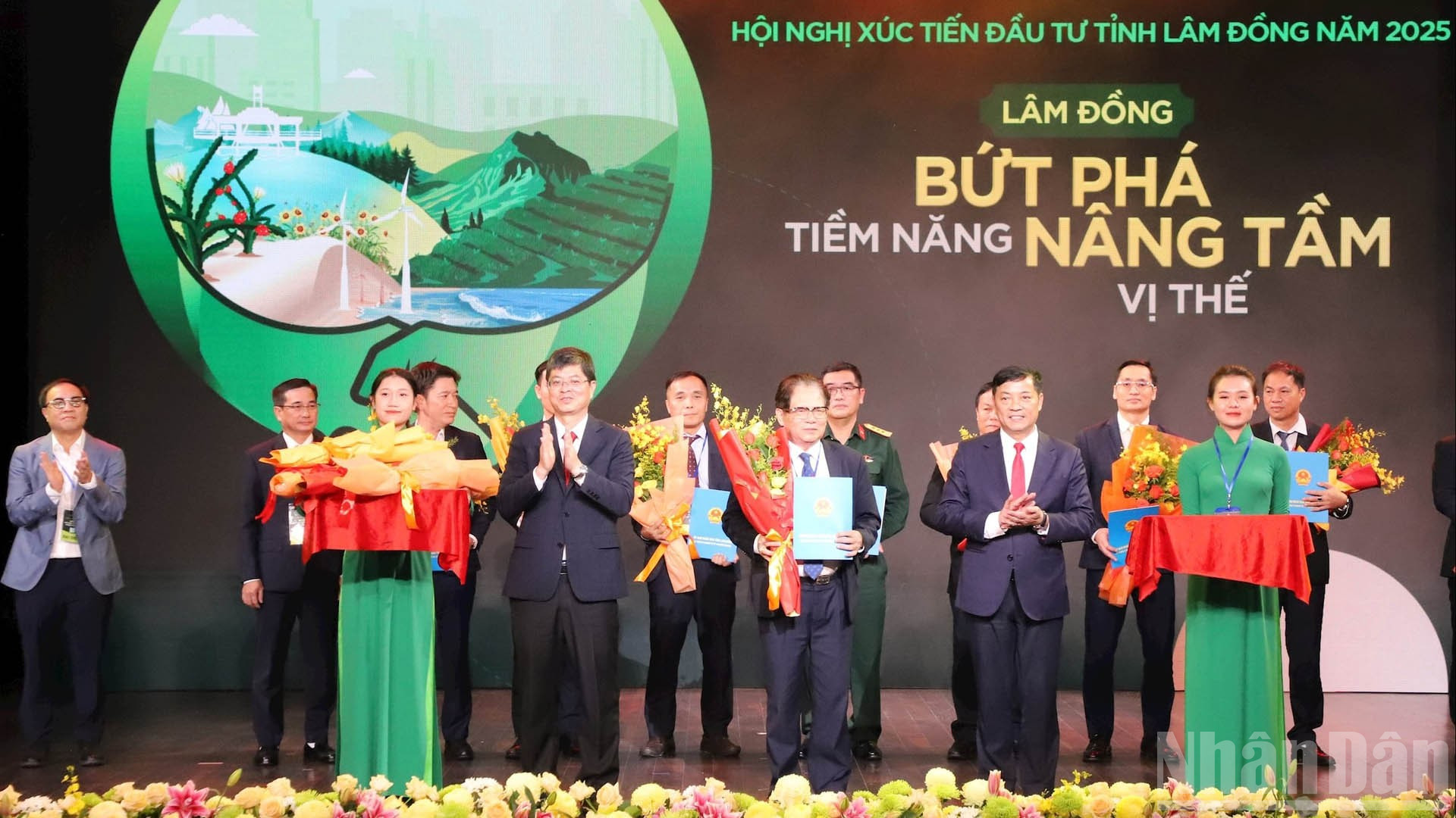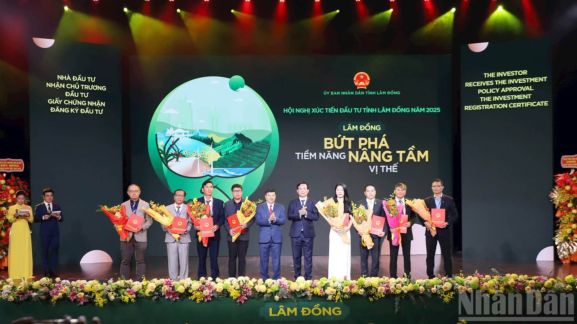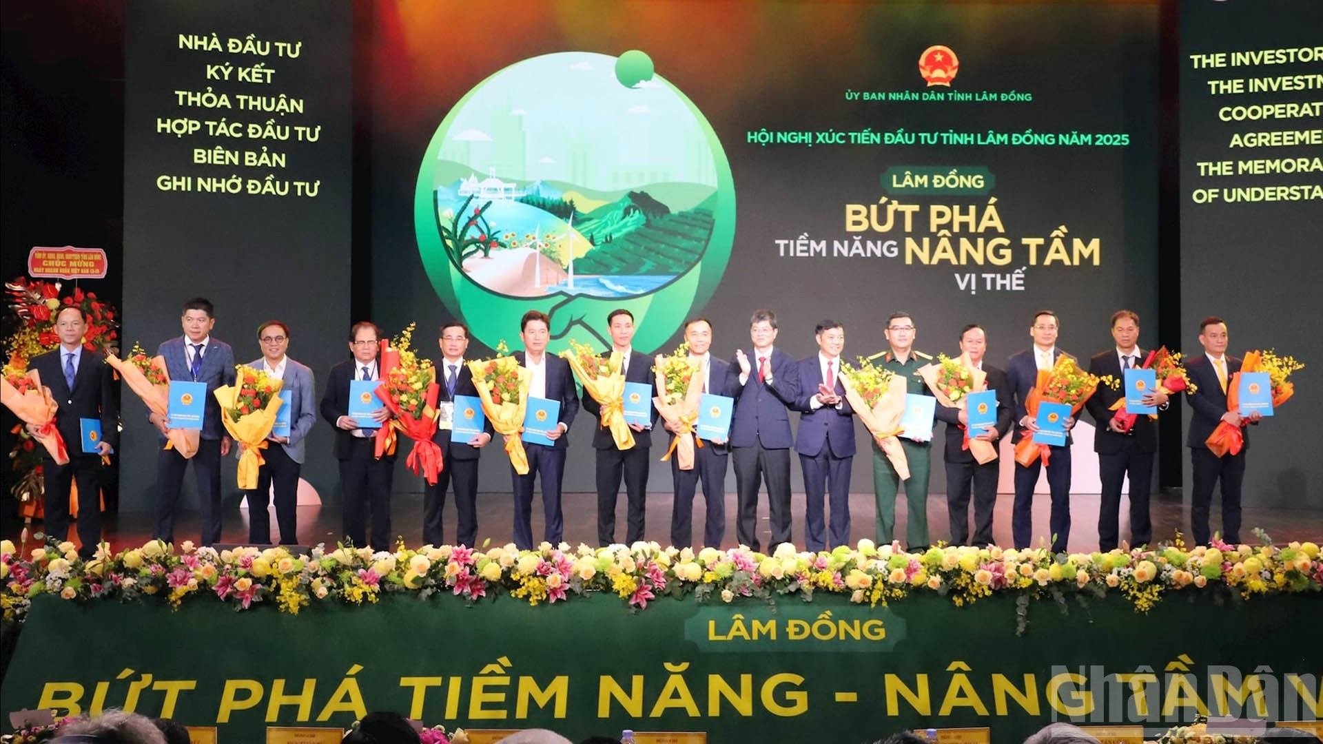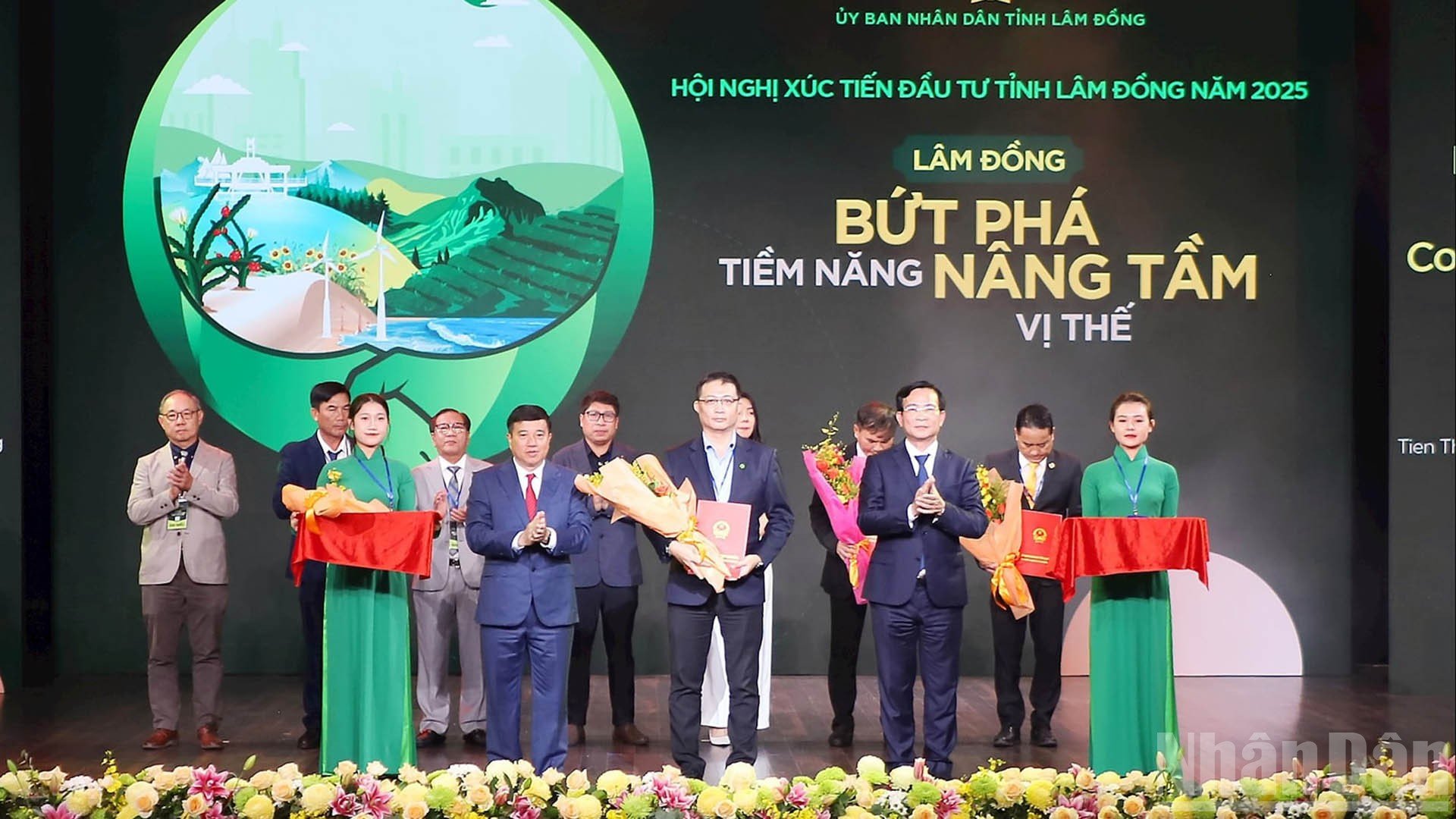 Tại hội nghị, Ủy ban nhân dân tỉnh Lâm Đồng đã trao quyết định chủ trương đầu tư, giấy chứng nhận đăng ký đầu tư cho tám doanh nghiệp, với tổng vốn đầu tư của các dự án hơn 35 nghìn tỷ đồng, diện tích hơn 2.300ha; trên các lĩnh vực du lịch, nông nghiệp, bất động sản…