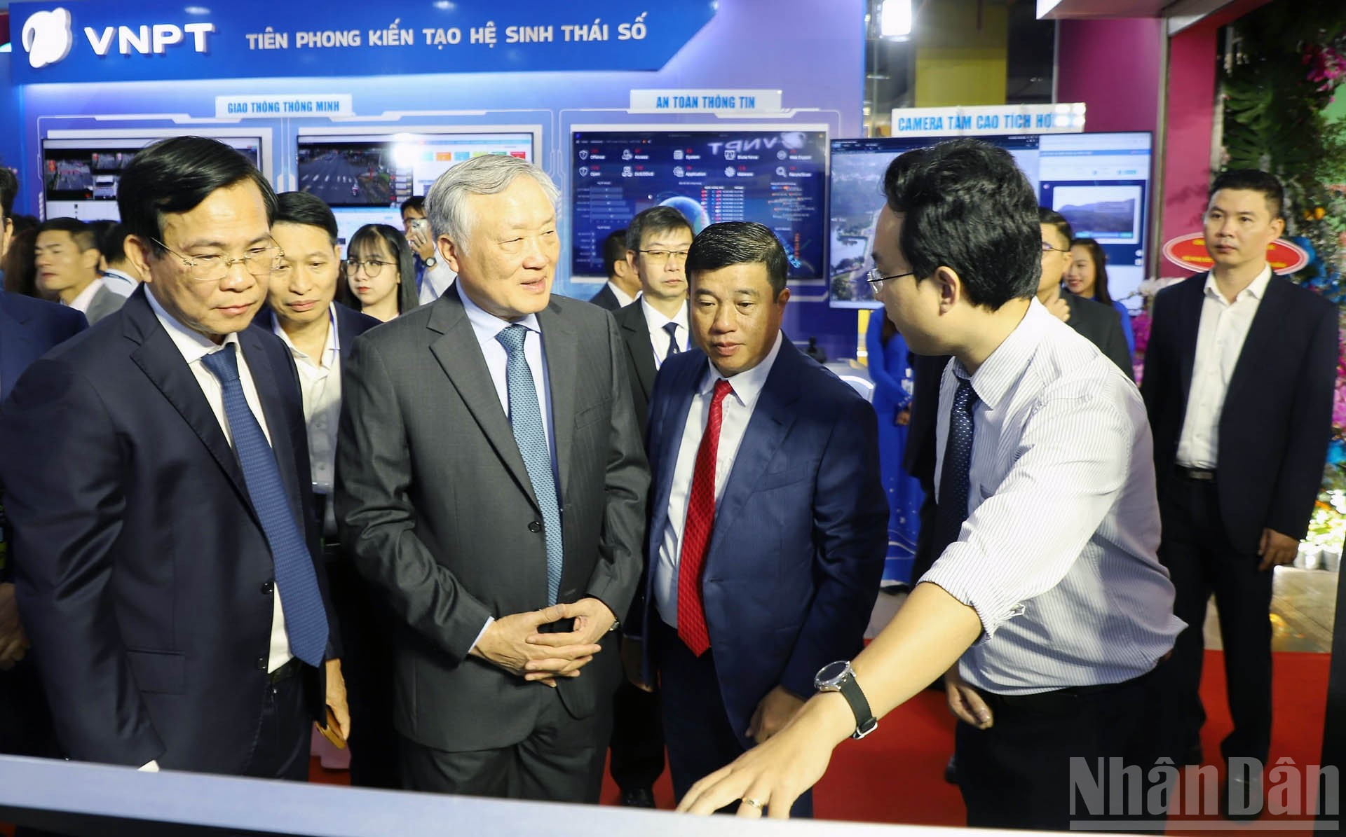 Phó Thủ tướng Thường trực Chính phủ Nguyễn Hòa Bình và lãnh đạo tỉnh Lâm Đồng tham quan khu triển lãm tiềm năng, thế mạnh để thu hút đầu tư vào địa phương.