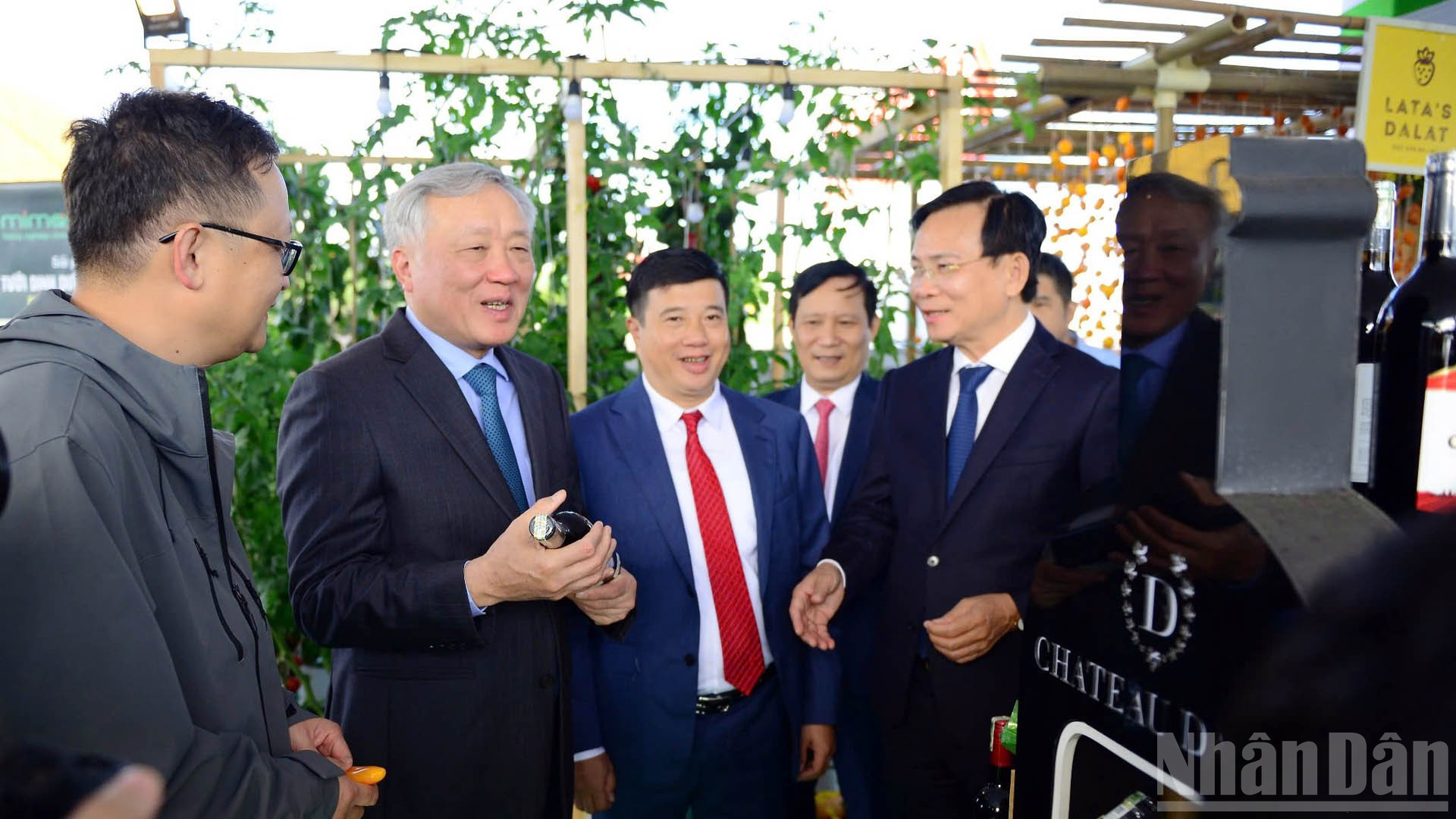 Ủy viên Bộ Chính trị, Phó Thủ tướng Thường trực Chính phủ Nguyễn Hòa Bình và đại biểu tham quan khu vực giới thiệu các dự án đầu tư tại Lâm Đồng.