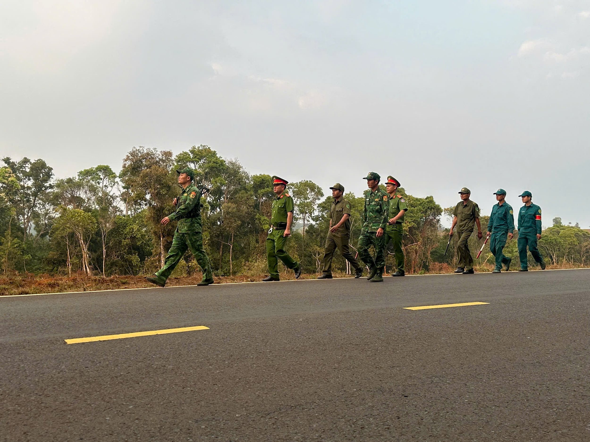 Các lực lượng phối hợp tuần tra, kiểm soát tại các vị trí dân cư thưa thớt nhằm bảo đảm an ninh trật tự cho người dân vùng biên
