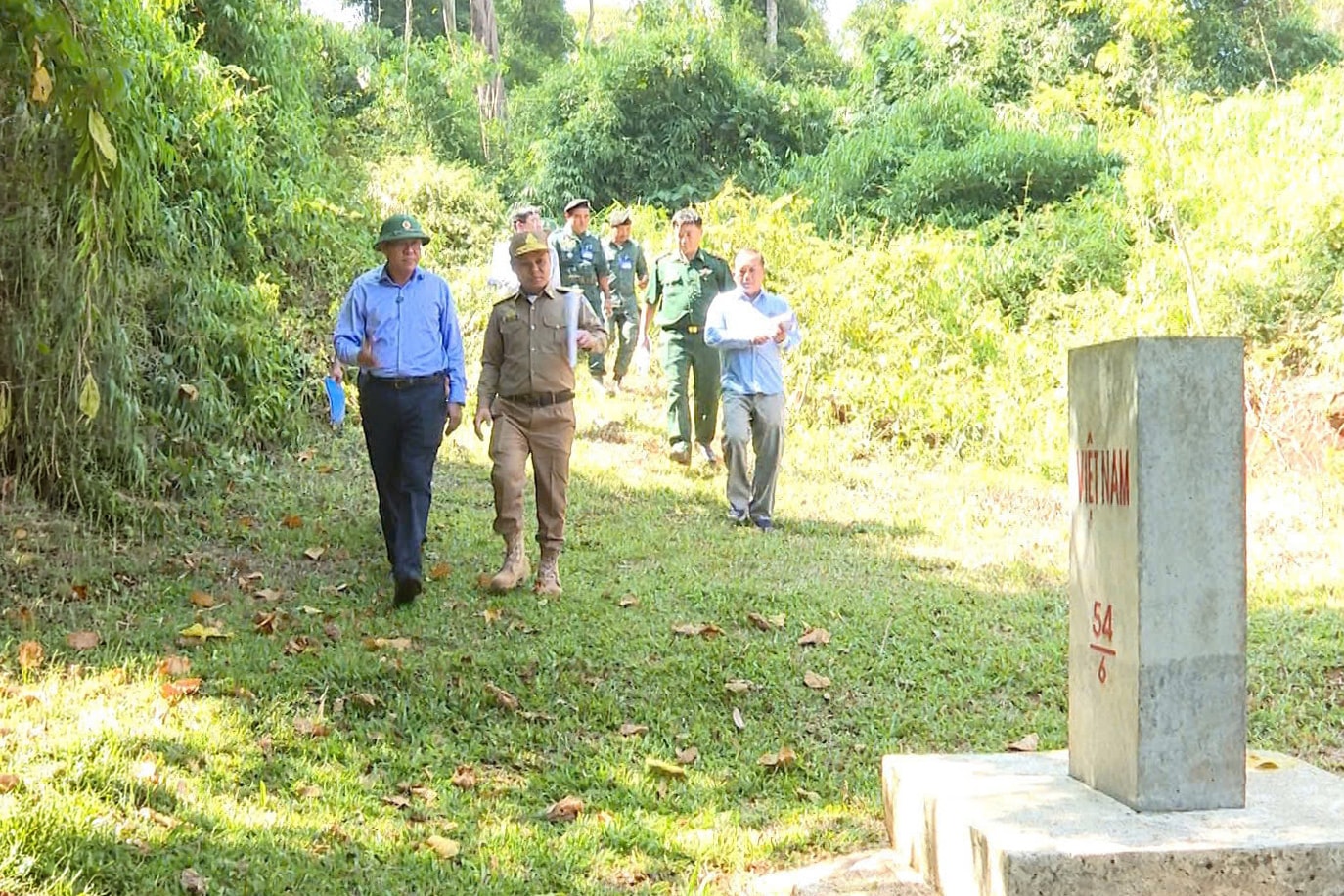 Đại diện hai bên khảo sát thực địa tại vị trí cột mốc 54/6