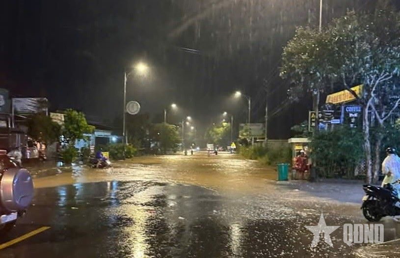 Nước lũ làm Quốc lộ 20 và nhiều nhà dân tại xã Hiệp Thạnh, tỉnh Lâm Đồng bị ngập sâu.