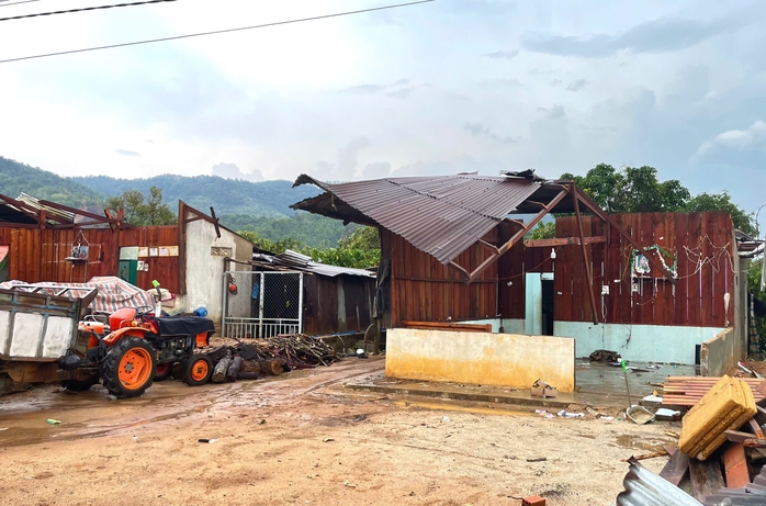Nhà dân ở xã Đam Rông 2 bị hư hỏng nặng trong cơn mưa giông lớn chiều 15-4.