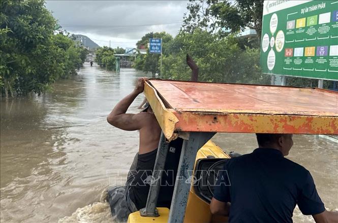 Chính quyền địa phương sử dụng phương tiện di chuyển người dân xã Hàm Thuận Bắc (tỉnh Lâm Đồng) về nơi an toàn.
