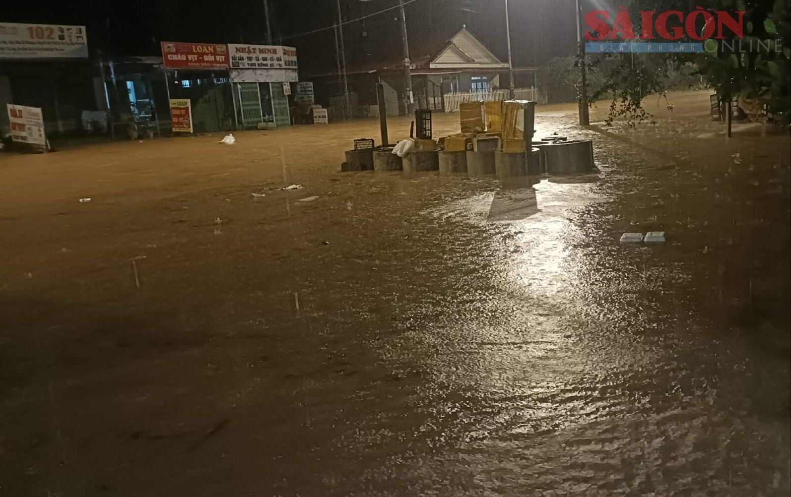 Quốc lộ 20 qua xã Hiệp Thạnh, tỉnh Lâm Đồng bị ngập sâu rạng sáng 4-12. Ảnh: QUANG THẮNG