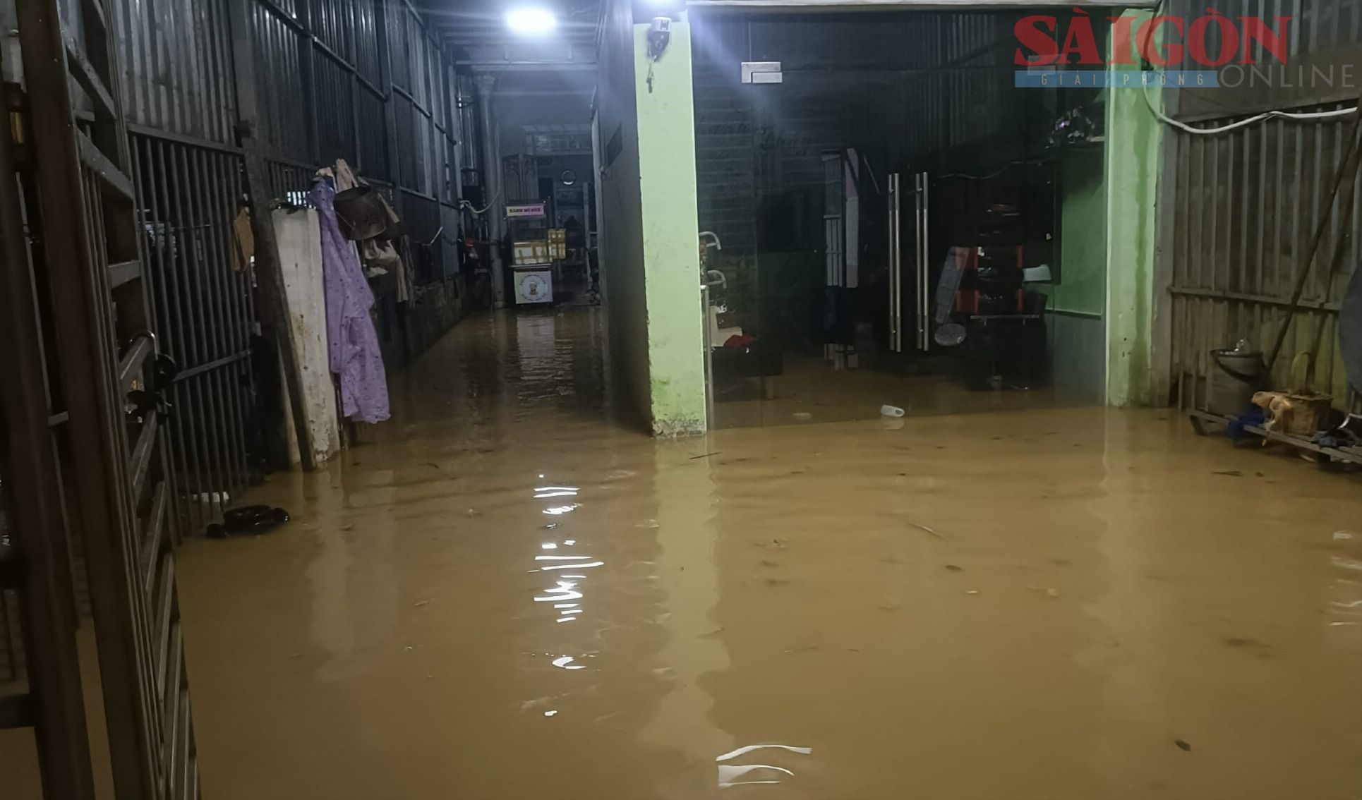 Nước lũ tràn vào nhà dân dọc hai bên đường quốc lộ 20 rạng sáng 4-12