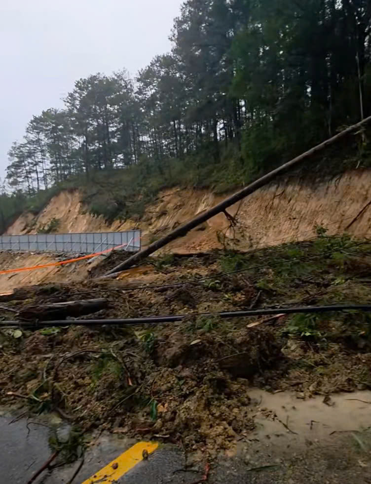 Quốc lộ 20 qua đèo Mimosa bị sạt lở sáng 4-12 tại đúng vị trí bị sạt lở nặng gây chia cắt cuối tháng 11-2025