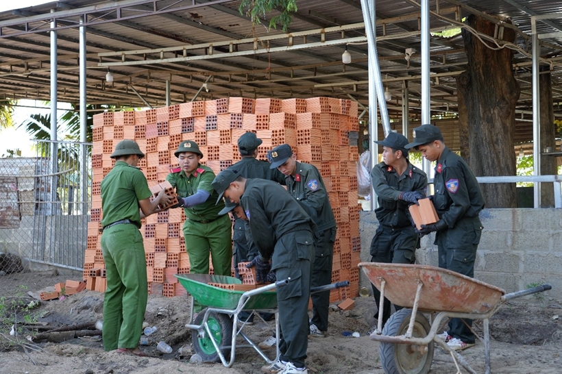 Tiểu đoàn Cảnh sát cơ động số 3 phối hợp Công an tỉnh Lâm Đồng trong “Chiến dịch Quang Trung” tại Hàm Thắng. Ảnh: CA.