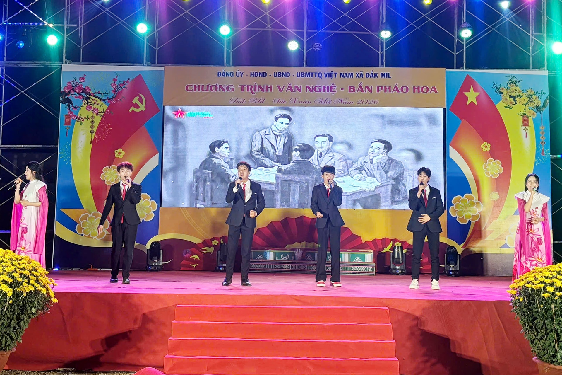 Tại xã Đắk Mil, chương trình văn nghệ kéo dài khoảng 1 giờ đồng hồ trước màn bắn pháo hoa tầm thấp lúc 21h đêm Giao thừa