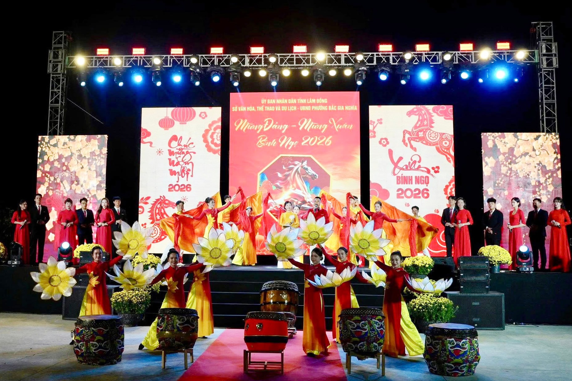 Từ Quảng trường Lâm Viên (phường Xuân Hương – Đà Lạt) đến khu vực Phan Thiết, Gia Nghĩa tới các địa phương xa xôi, Chương trình nghệ thuật Mừng Đảng - Mừng Xuân 2026 do UBND tỉnh tổ chức thu hút đông đảo Nhân dân và du khách tham dự.