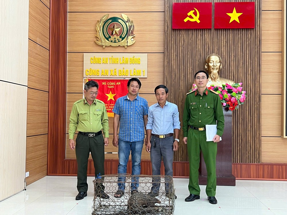 Tiếp nhận cá thể tê tê, lực lượng Công an xã Bảo Lâm 1 ghi nhận và biểu dương tinh thần trách nhiệm, sự chủ động của người dân trong việc chung tay bảo vệ tài nguyên rừng và đa dạng sinh học.
