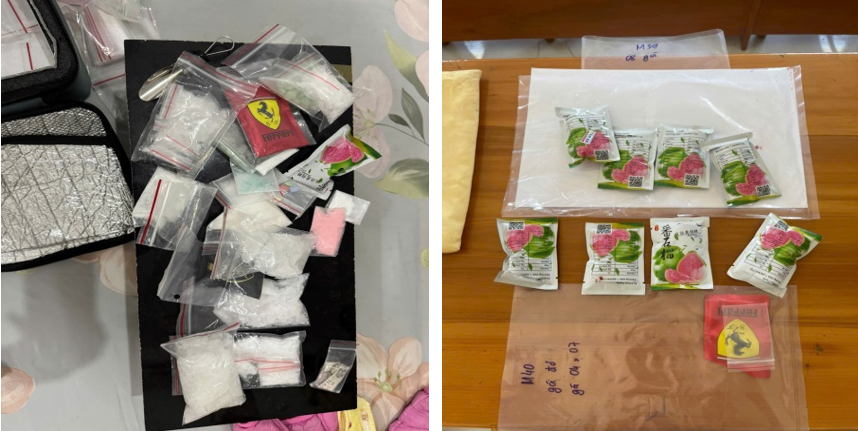Công an xã phối hợp Ban Chỉ huy Quân sự xã Sơn Mỹ kiểm tra, thu giữ nhiều túi nylon chứa tinh thể trắng, bột cam, viên nén và cân tiểu ly. Kết quả giám định xác định số tang vật là chất ma túy loại Ketamine và Methamphetamine, tổng khối lượng hơn 2,7kg.