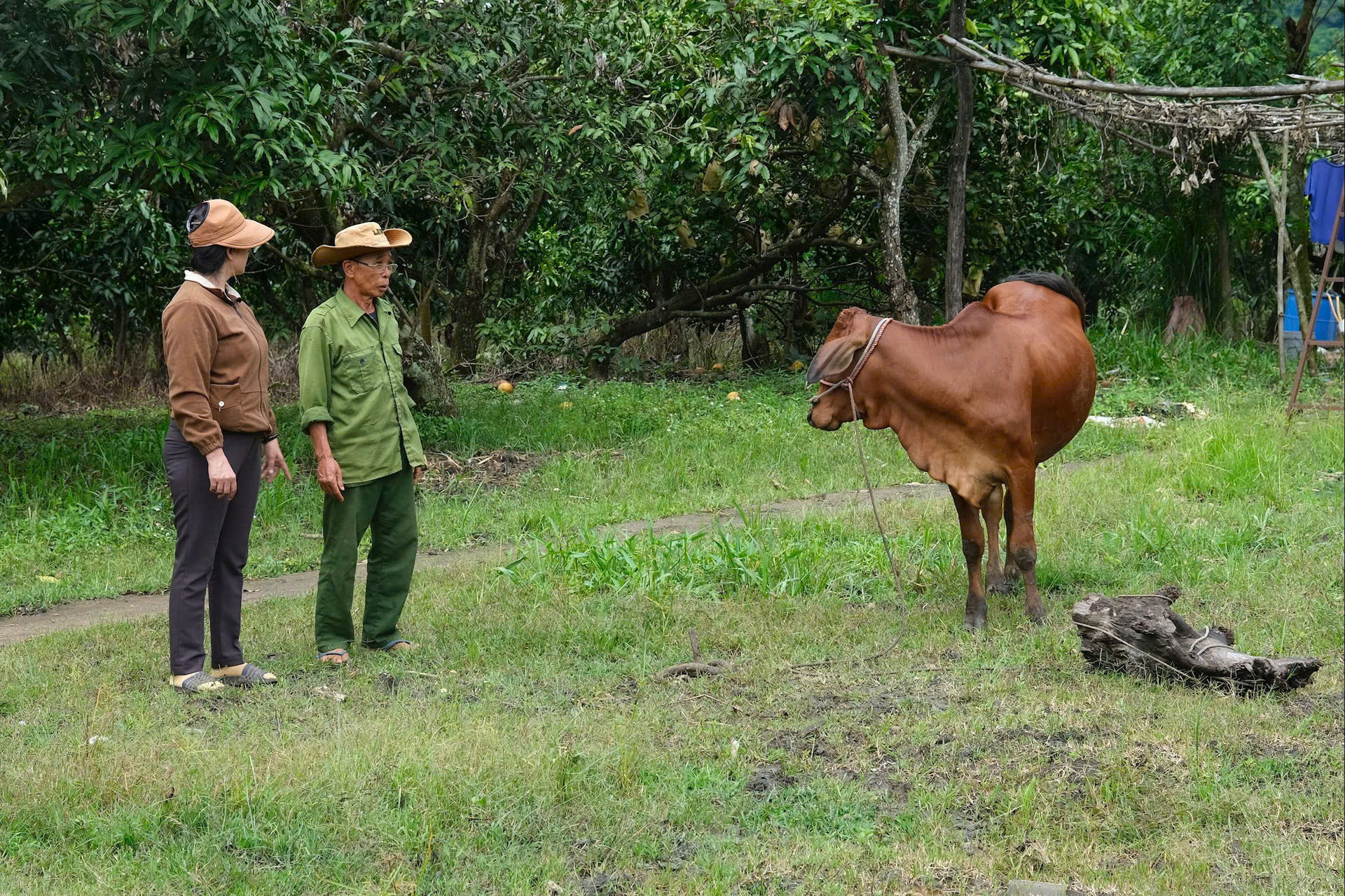 Cơ hội đến khi gia đình chị được xét thụ hưởng chính sách trong Chương trình Mục tiêu quốc gia giảm nghèo bền vững giai đoạn 2021 – 2025. Ngoài khoản vay ưu đãi từ Ngân hàng Chính sách xã hội, chị còn được cấp bò giống sinh sản và được cán bộ kỹ thuật hướng dẫn cụ thể cách chăm nuôi, phòng bệnh, cũng như tận dụng phân chuồng ủ thành phân hữu cơ cho rẫy cà phê.