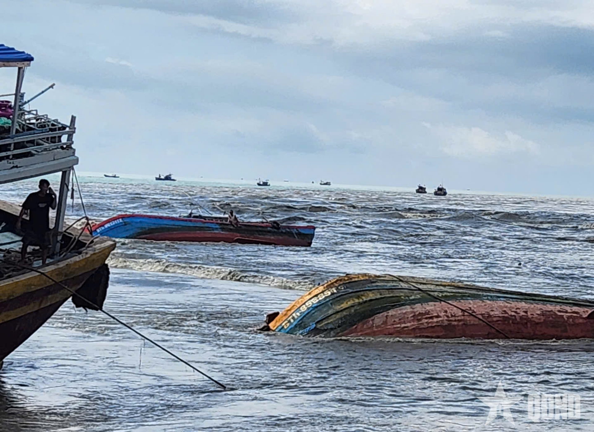 Tiếp đó, tàu cá BTh 85885 TS của ông Hoàng Đức Minh (sinh năm 1974) và tàu cá BTh 86131 TS của ông Ngô Trọng Hiếu (sinh năm 1968) cùng trú phường Phước Hội (tỉnh Lâm Đồng) khi neo đậu tại cửa cảng La Gi cũng bị nước chảy xiết làm chìm tại chỗ. Hiện chưa ước tính được thiệt hại.