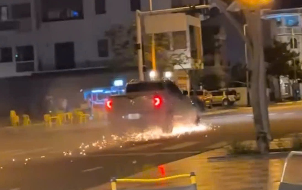 Ô tô bán tải kéo lê xe máy trên đường. Ảnh cắt từ clip
