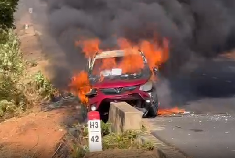 VIDEO: Ô tô bốc cháy dữ dội trên cung đường Mũi Né - Bàu Trắng ở Lâm Đồng