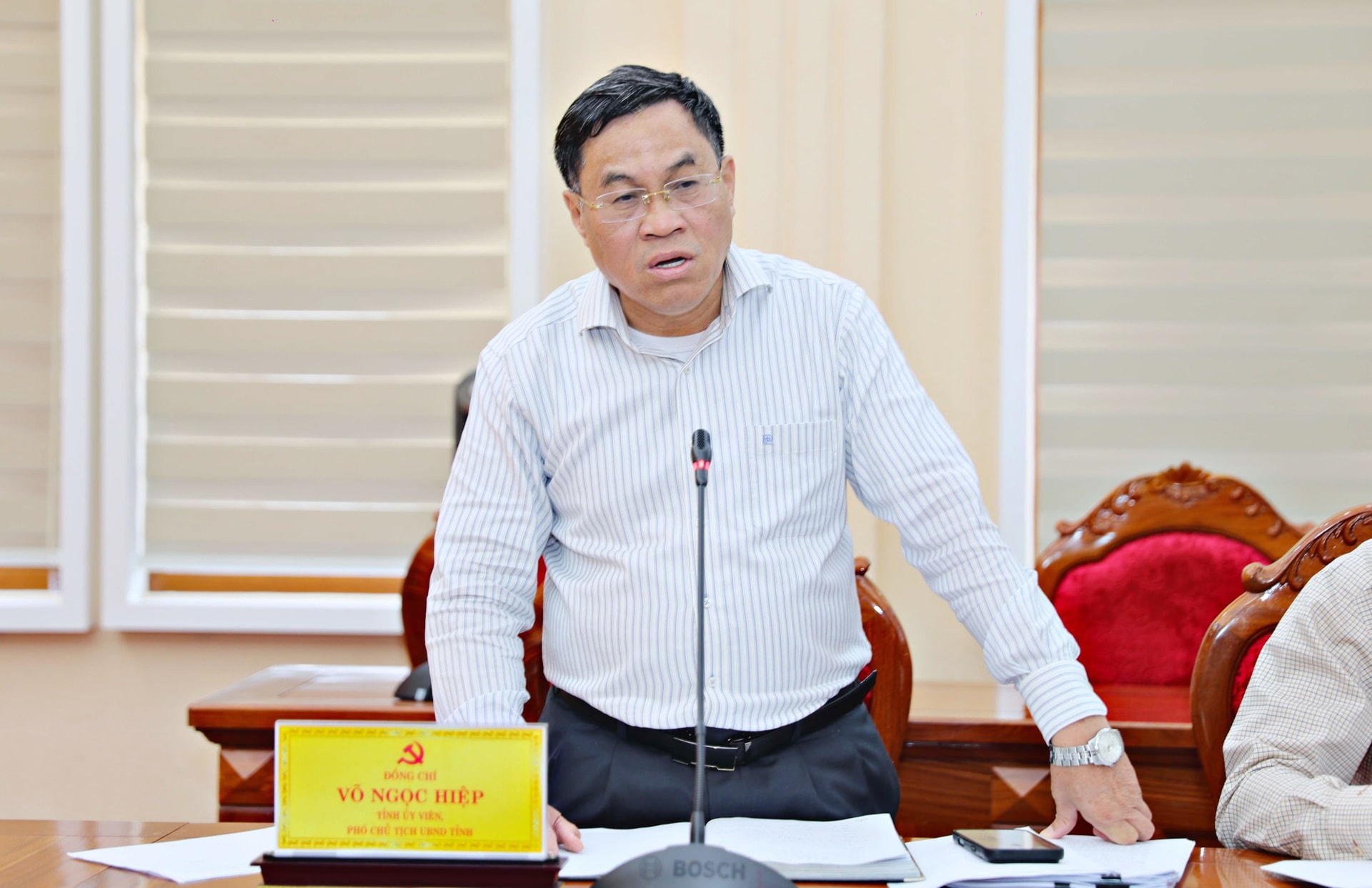 Đồng chí Võ Ngọc Hiệp, Tỉnh ủy viên, Phó Chủ tịch UBND tỉnh Lâm Đồng trao đổi phương hướng xử lý tài sản công dôi dư hiện nay của các sở, ngành
