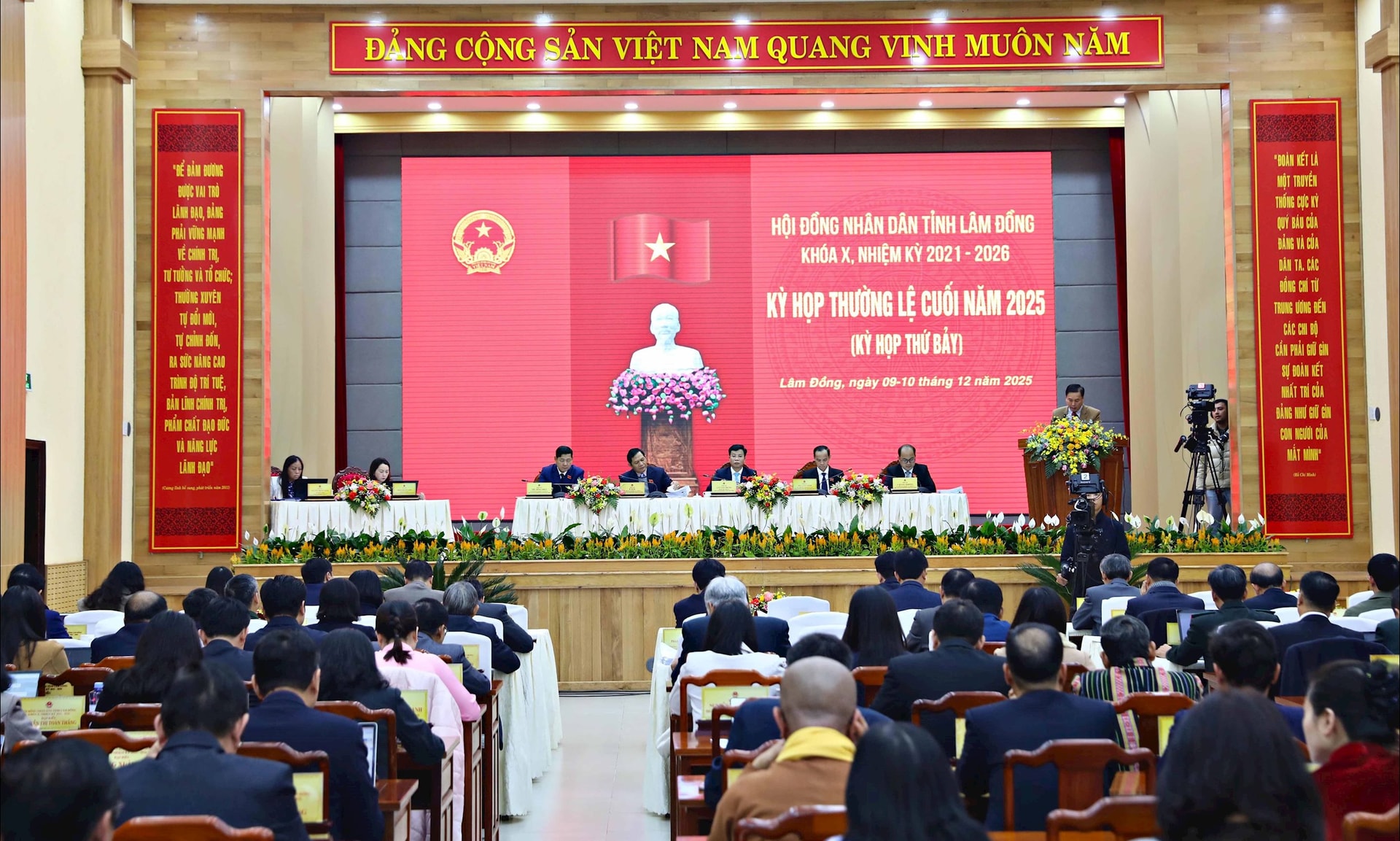 Tại các phiên làm việc trong ngày 10/12, các đại biểu đã tham gia thảo luận và thông qua 21 dự thảo nghị quyết. HĐND tỉnh đã thảo luận, biểu quyết thông qua Nghị quyết về nhiệm vụ phát triển kinh tế - xã hội năm 2026, với các mục tiêu kinh tế - xã hội chủ yếu, 12 nhóm chỉ tiêu trọng tâm.
