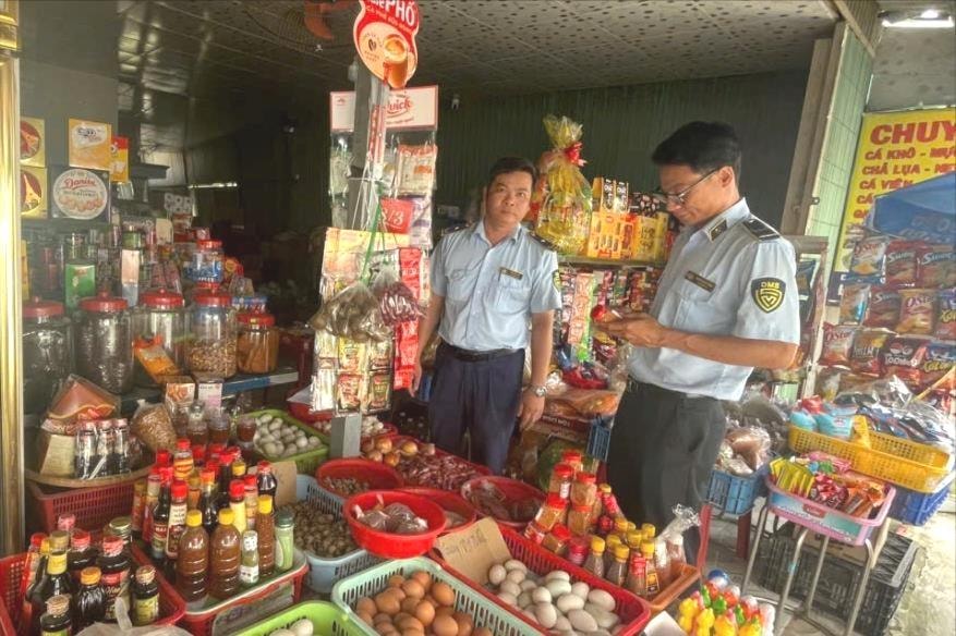 Lực lượng QLTT kiểm tra một cửa hàng tạp hóa tại Hàm Thạnh