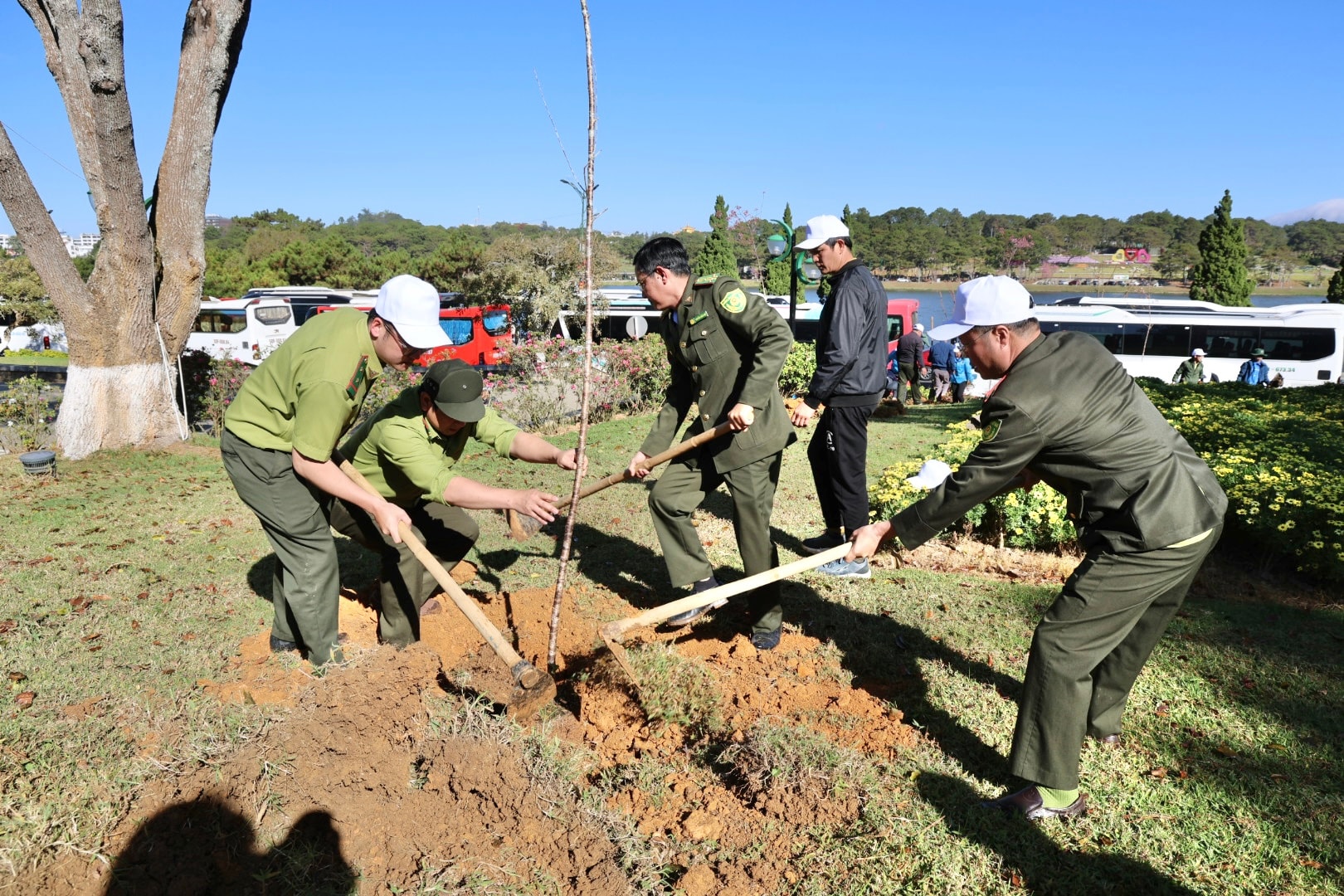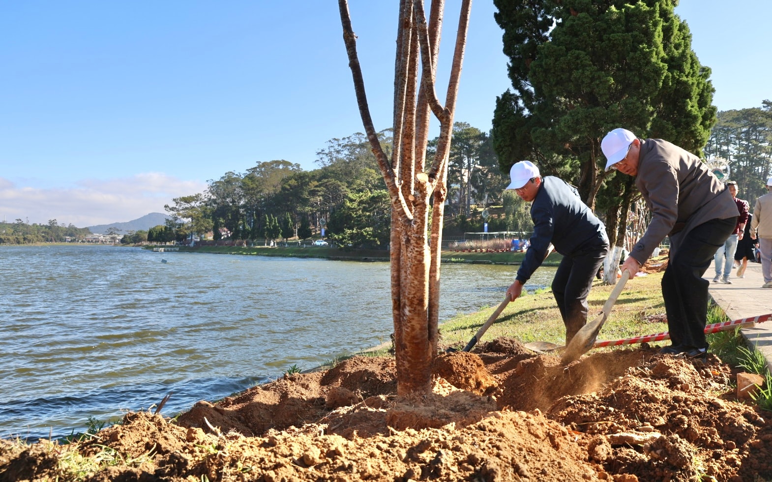 Ngay sau lễ phát động, các đồng chí lãnh đạo tỉnh và đại biểu cùng nhân dân đã tham gia trồng cây xanh, đồng thời ra quân dọn dẹp vệ sinh môi trường, thu gom rác thải tại khu vực Quảng trường Lâm Viên, Hồ Xuân Hương và các tuyến đường lân cận.