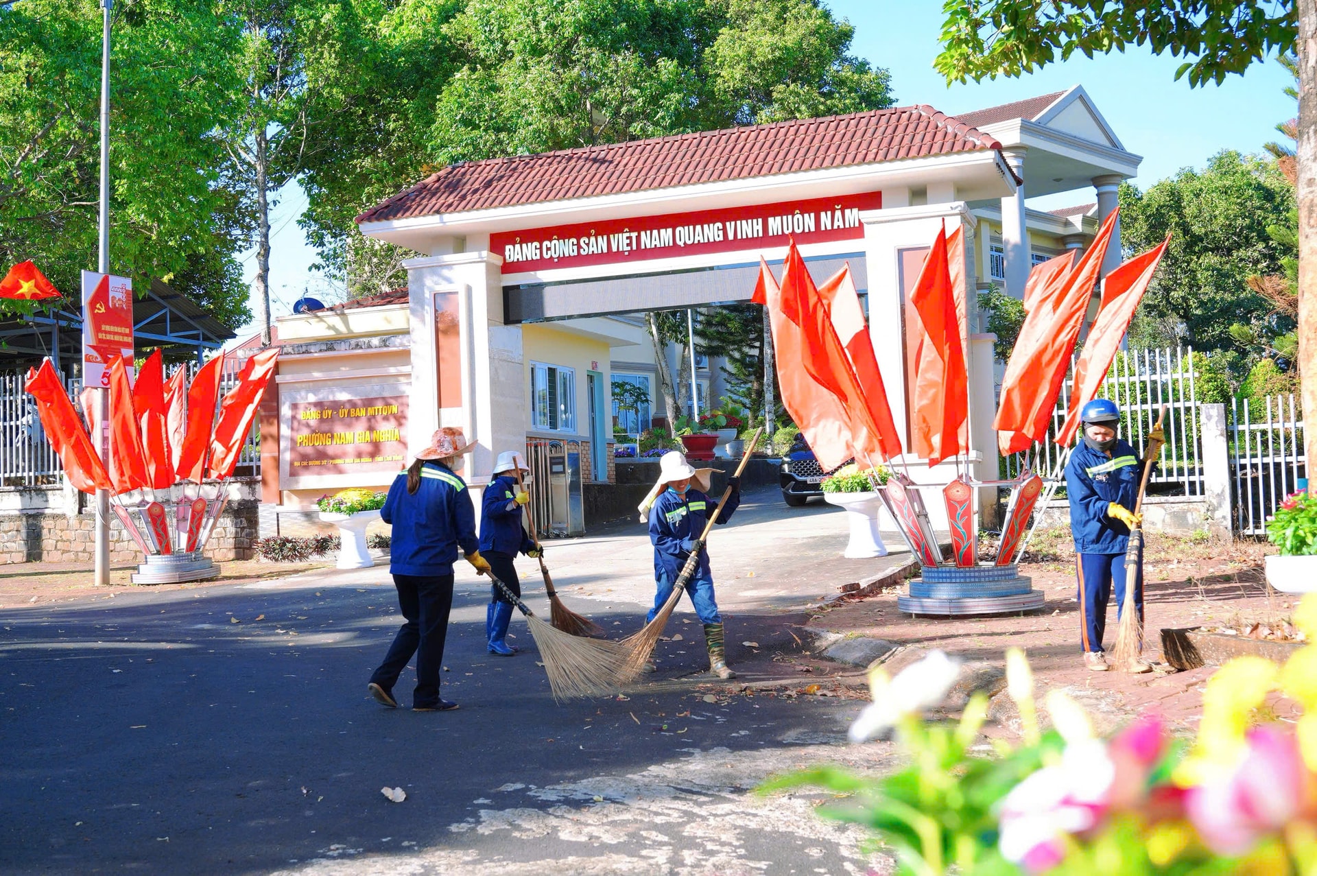 * Tại phường Nam Gia Nghĩa, ngay sau lễ phát động, các lực lượng đã đồng loạt ra quân tổng vệ sinh môi trường tại đường 3/2, tuyến Võ Văn Tần và khu vực xung quanh trụ sở Trung tâm hành chính phường.