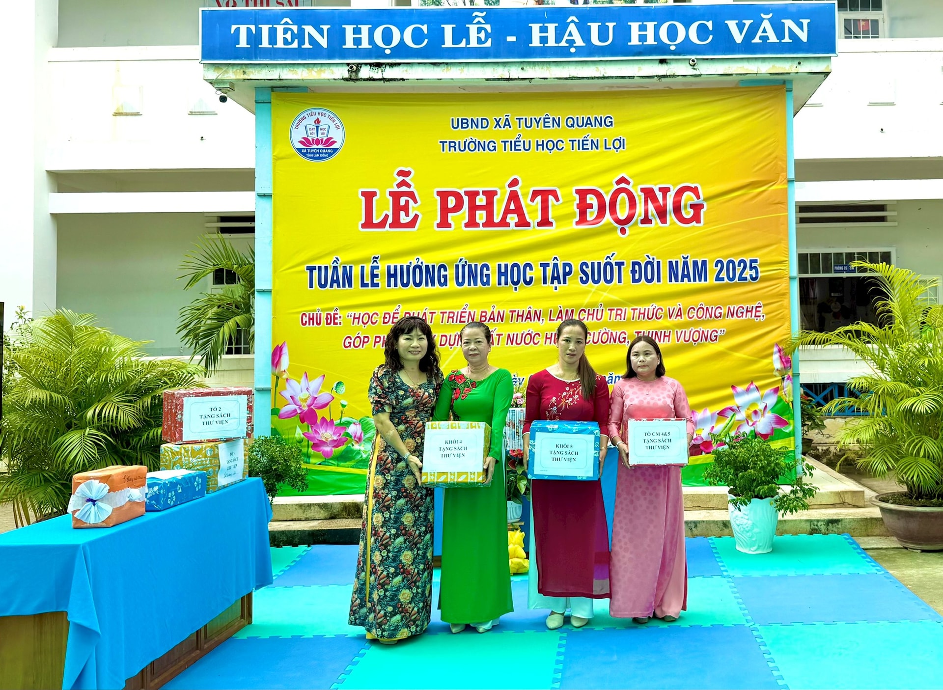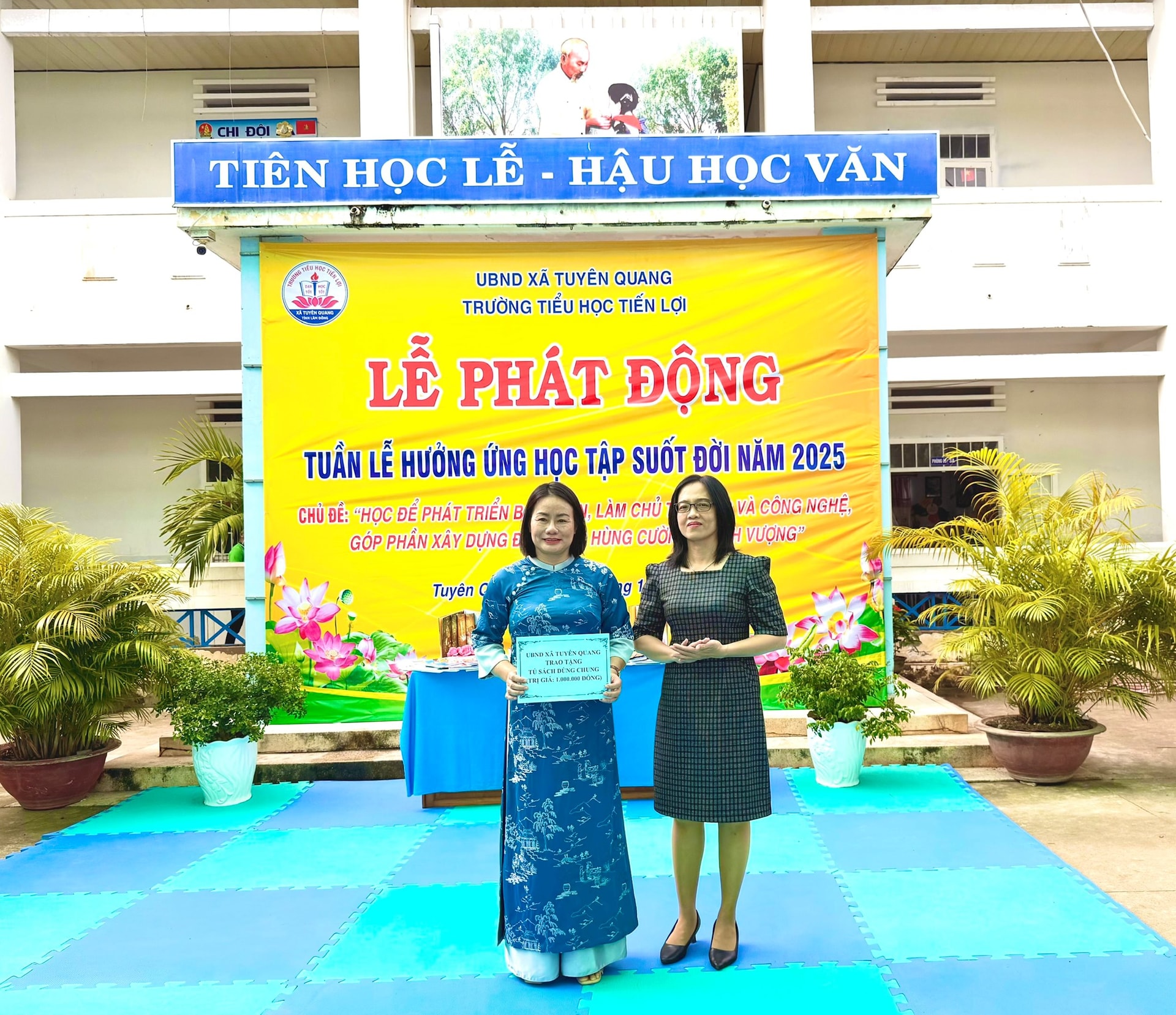 Trong Lễ phát động Tuần lễ hưởng ứng học tập suốt đời năm 2025, UBND xã Tuyên Quang cùng các tổ chức, ban ngành đoàn thể, các thầy cô giáo và học sinh Trường Tiểu học Tiến Lợi đã đóng góp gần 400 đầu sách tặng thư viện của trường.