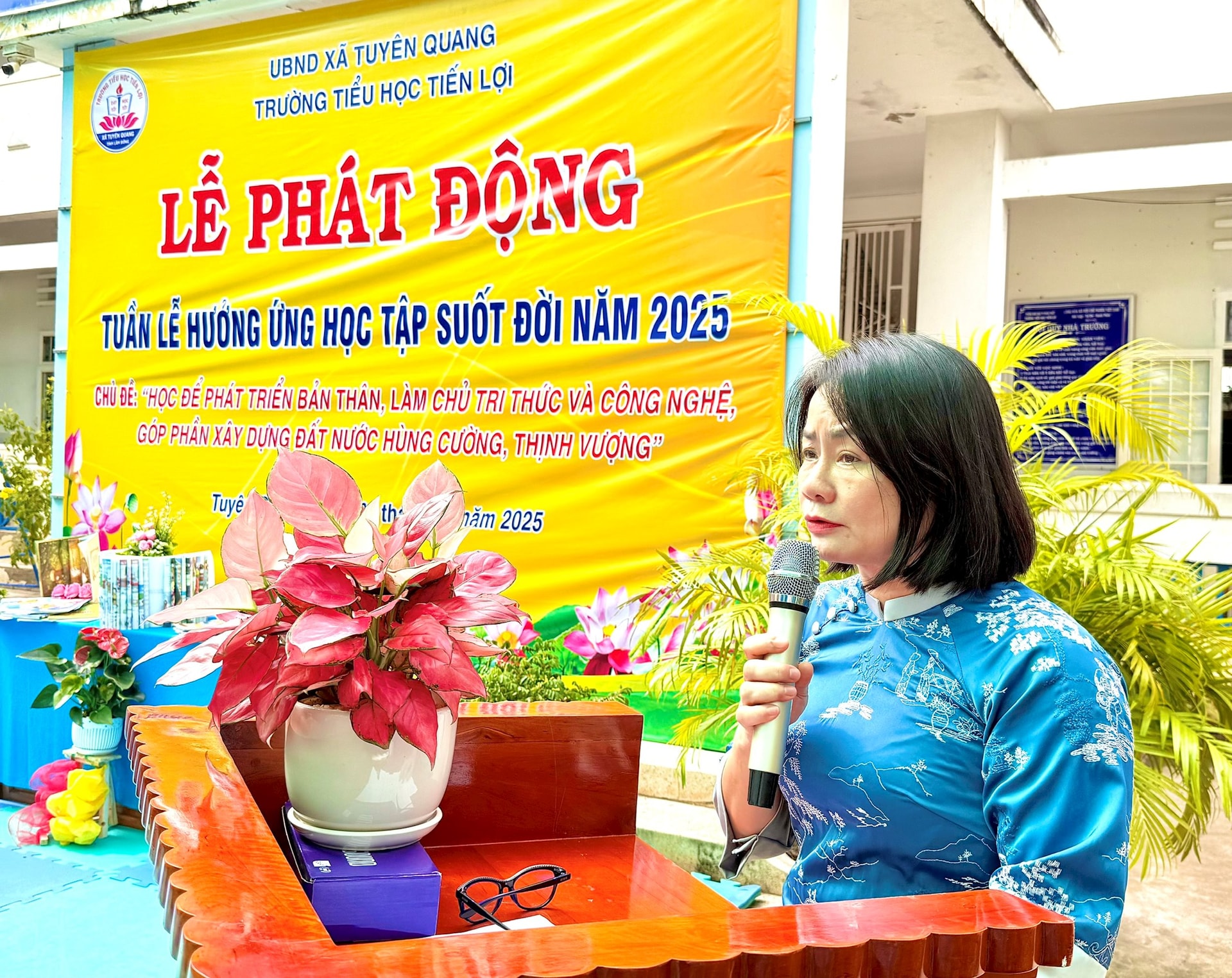 Thể hiện quyết tâm thực hiện tốt nhiệm vụ giáo dục, cô Nguyễn Thị Yến Oanh, Hiệu trưởng Trường Tiểu học Tiến Lợi khẳng định: Sau Lễ phát động Tuần lễ hưởng ứng học tập suốt đời, mỗi thầy cô giáo và học sinh sẽ có thêm động lực để biến tinh thần "Học để phát triển bản thân, làm chủ tri thức và công nghệ, góp phần xây dựng đất nước hùng cường, thịnh vượng" thành hành động cụ thể. Nhà trường đã xây dựng kế hoạch chi tiết với nhiều hoạt động thiết thực như tuyên truyền, giới thiệu sách hay, tổ chức các cuộc thi "Đại sứ văn hóa đọc", "Quyển sách tôi yêu", làm phong phú thêm tủ sách thư viện… Hiệu trưởng kêu gọi toàn thể học sinh tích cực hưởng ứng, tham gia sôi nổi, coi mỗi hoạt động là cơ hội để khám phá tri thức, rèn luyện bản thân và lan tỏa văn hóa đọc đến cộng đồng.