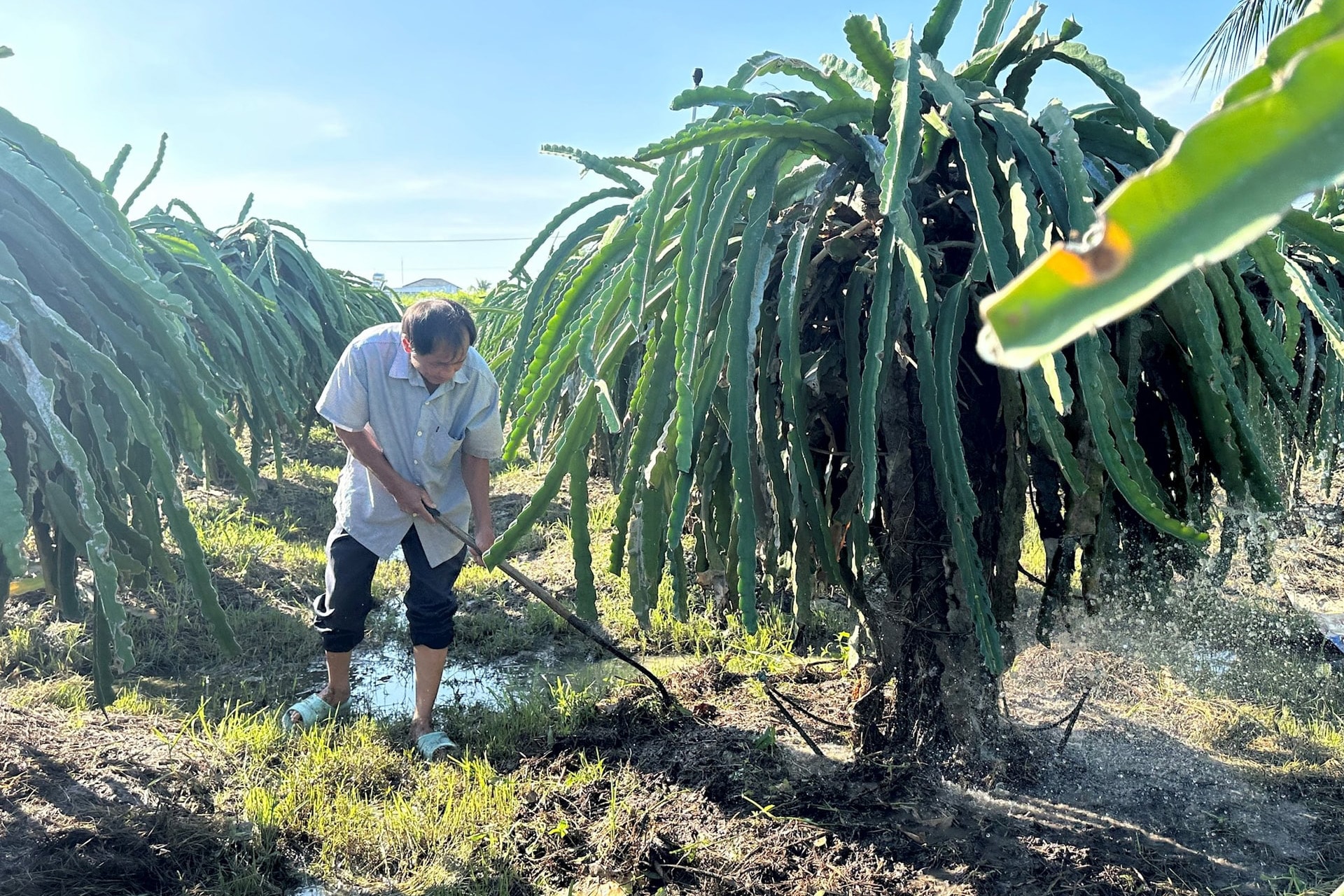 Nông dân phường Hàm Thắng khôi phục cây thanh long sau lũ