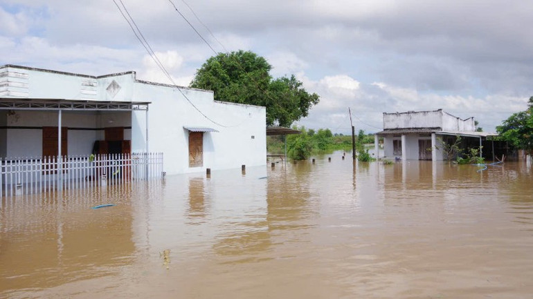 Nhiều nhà phường Hàm Thắng bị ngập sâu.