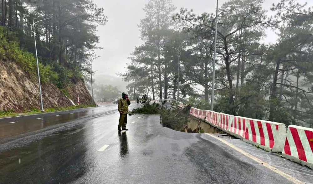 Tại đèo Prenn, cơ quan chức năng ghi nhận một vế nứt mặt đường kéo dài hơn 15m, một phần đường bị sạt bên phía ta-luy âm đoạn giữa đèo. Để đảm bảo an toàn giao thông, lực lượng chức năng nhanh chóng phân luồng, hướng dẫn các phương tiện di chuyển lên xuống Đà Lạt theo đèo Mimosa.