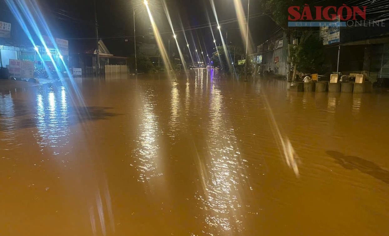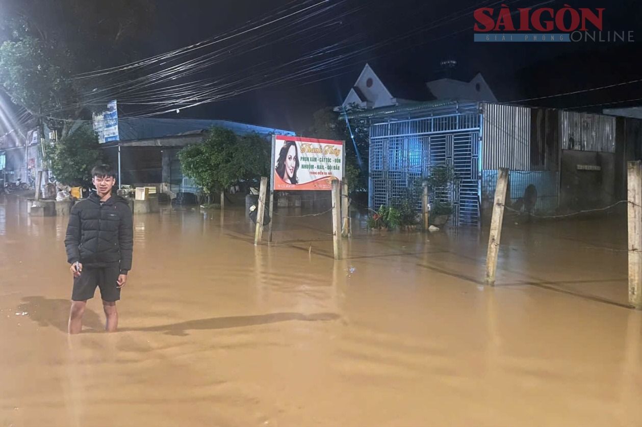 Quốc lộ 20 qua xã Hiệp Thạnh, tỉnh Lâm Đồng bị ngập sâu tối 1-11