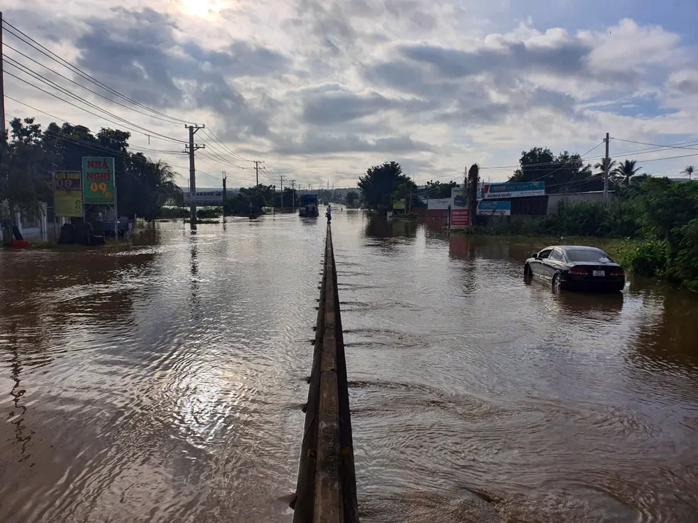 Quốc lộ 1 đoạn qua Sông Lũy, Lâm Đồng bị ngập.
