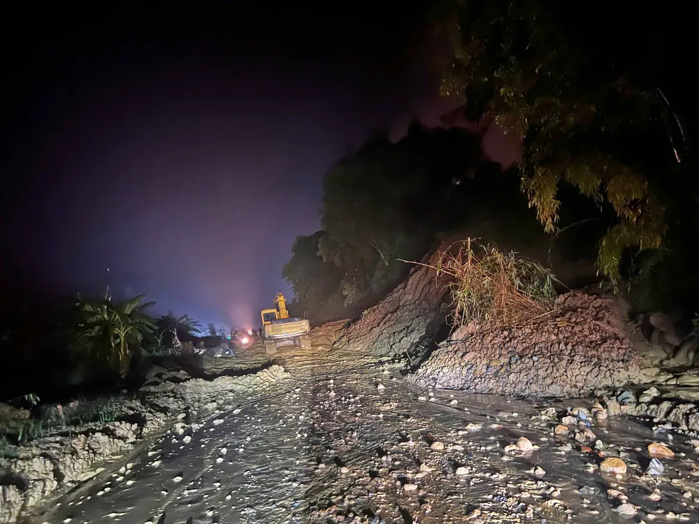 Tại Quốc 28B thuộc địa phận xã Phan Sơn xảy ra lở taluy dương gây ách tắc giao thông và nước tràn qua đường gây khó khăn cho giao thông qua lại.