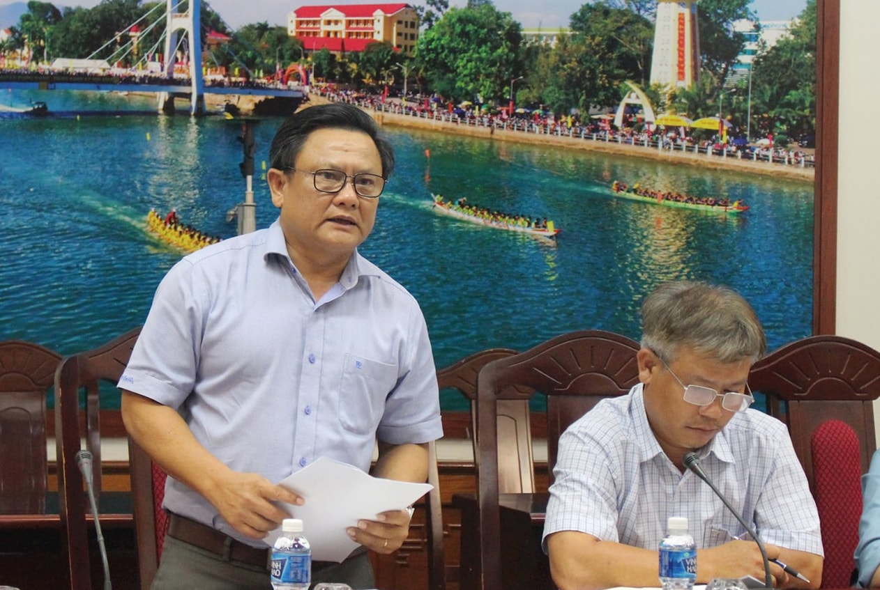 Lãnh đạo Ban QLDA ĐTXD khu vực Hàm Tân báo cáo tại cuộc họp