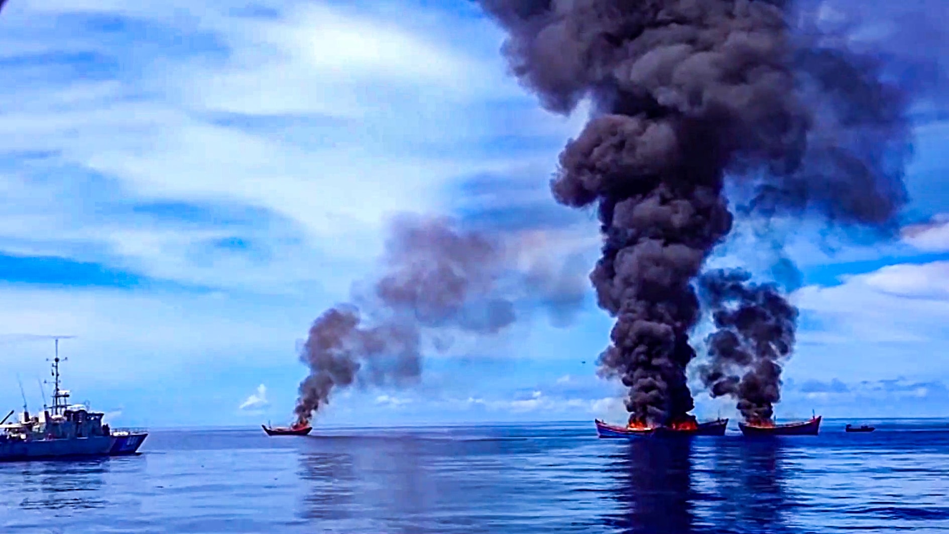 Tàu thuyền khai thác vi phạm lãnh hải nước ngoài bị tiêu hủy. Ảnh: Ngọc Lân