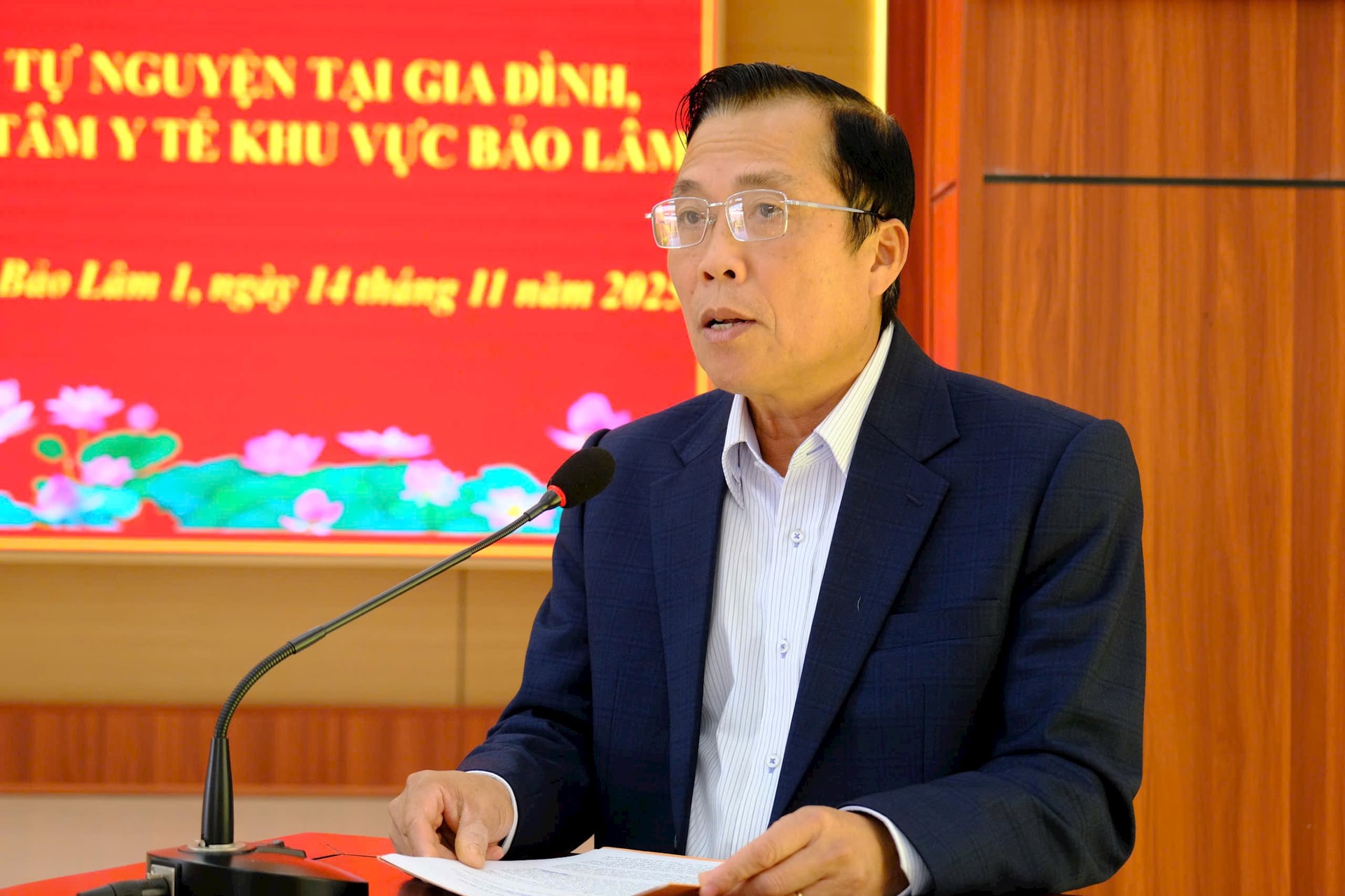 Chủ tịch UBND xã Bảo Lâm 1 Trịnh Văn Thảo phát biểu tại lễ ra mắt