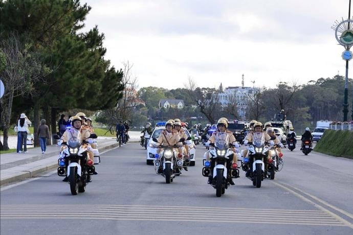 Các lực lượng nghiệp vụ Công an tỉnh Lâm Đồng diễu hành biểu dương lực lượng trên các tuyến đường