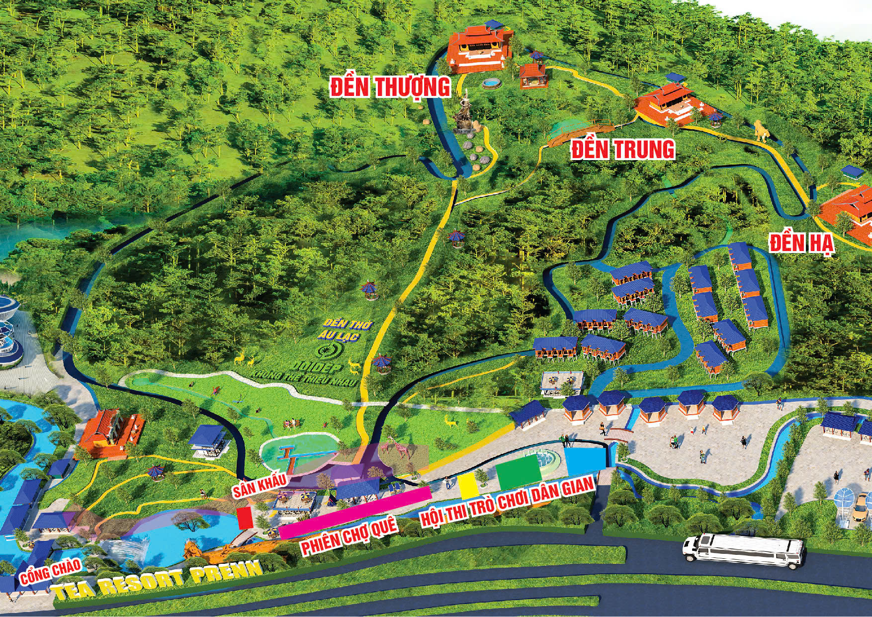 Sơ đồ tổng thể khu vực tổ chức Lễ hội Giỗ Tổ Hùng Vương 2026 tại Khu du lịch thác Prenn