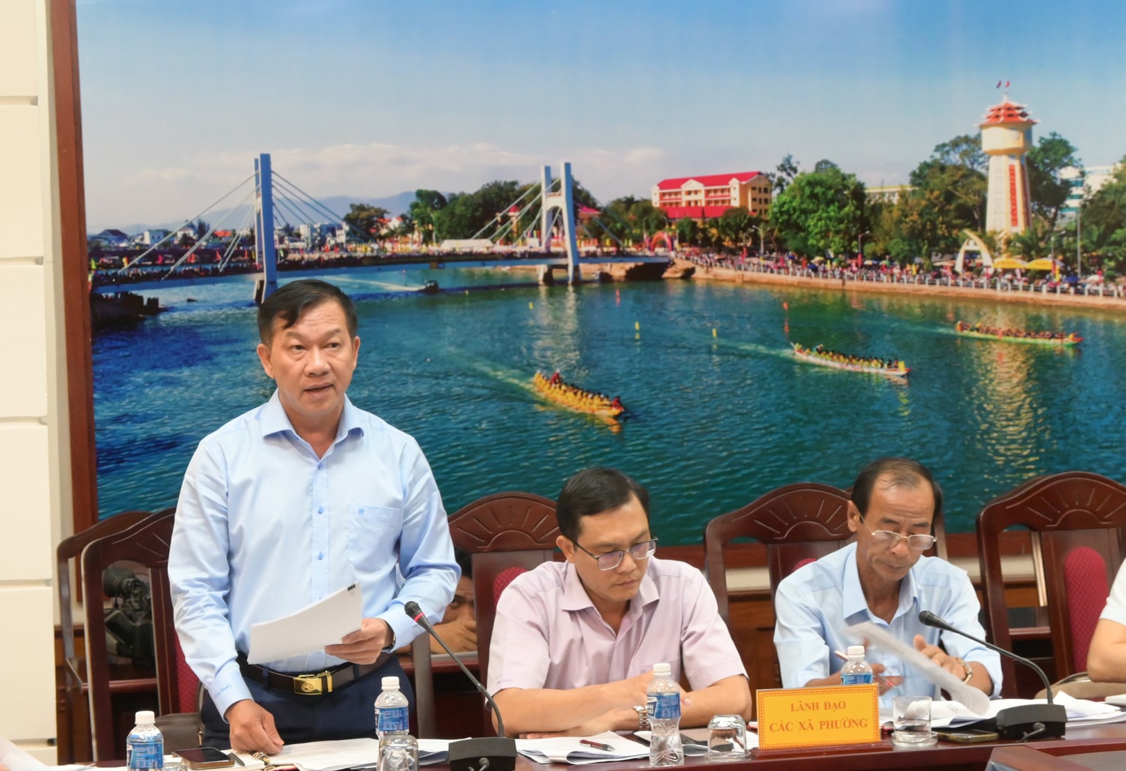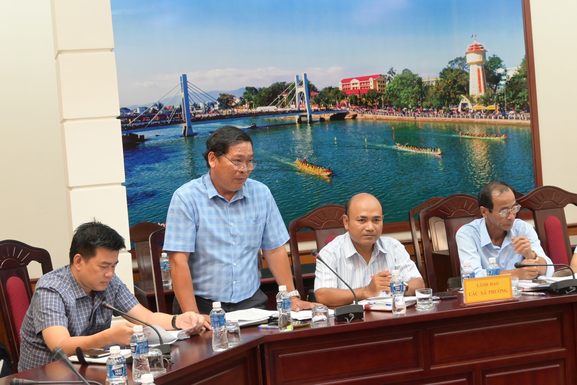 Lãnh đạo UBND xã Hòa Thắng phát biểu tại cuộc họp