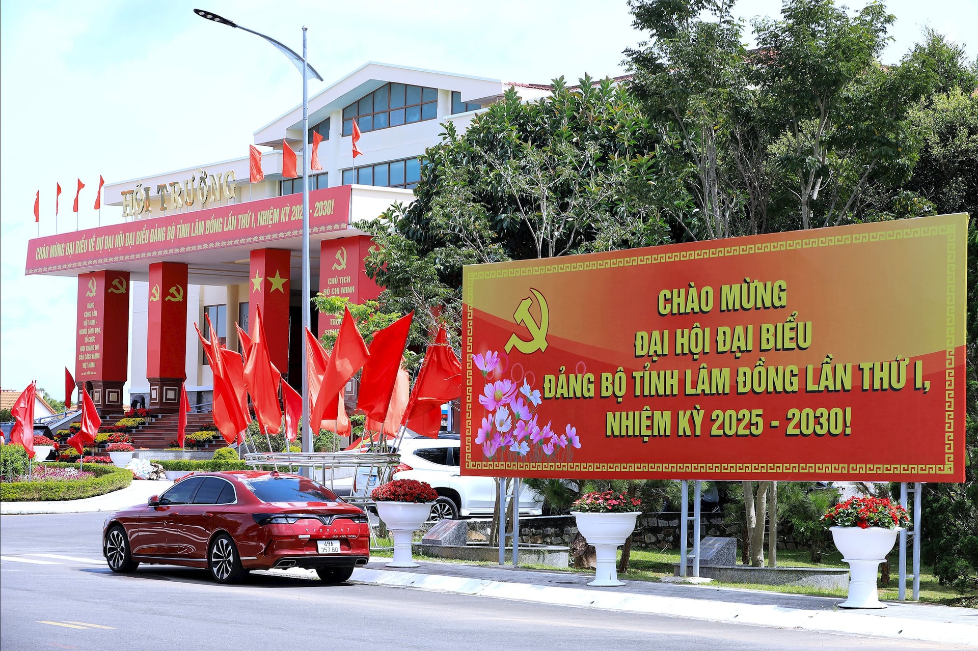 Khu vực diễn ra Đại hội Đại hội đại biểu Đảng bộ tỉnh Lâm Đồng lần thứ I được trang hoàng rực rỡ