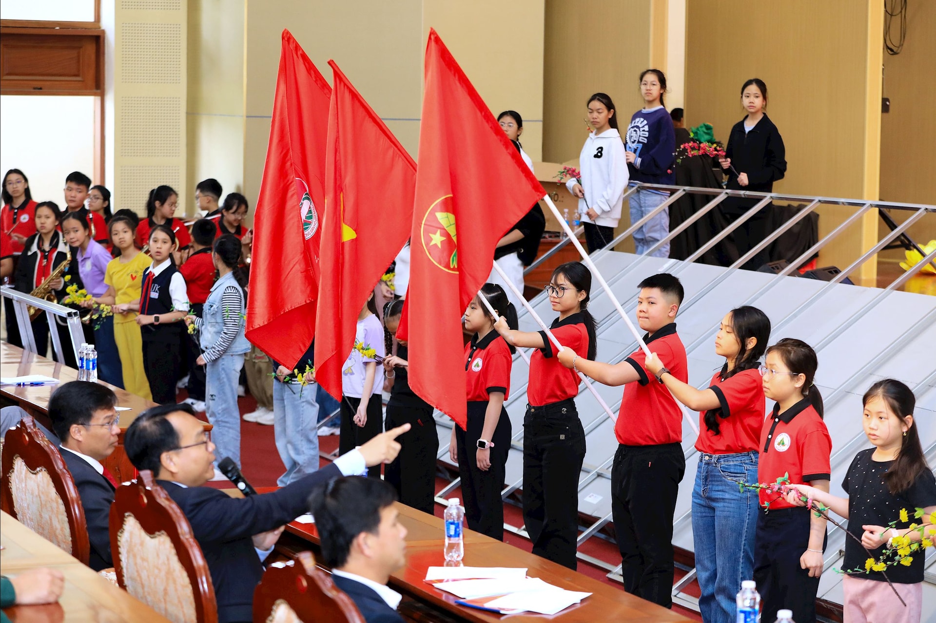 Đoàn thiếu nhi tập luyện nghi thức chúc mừng Đại hội