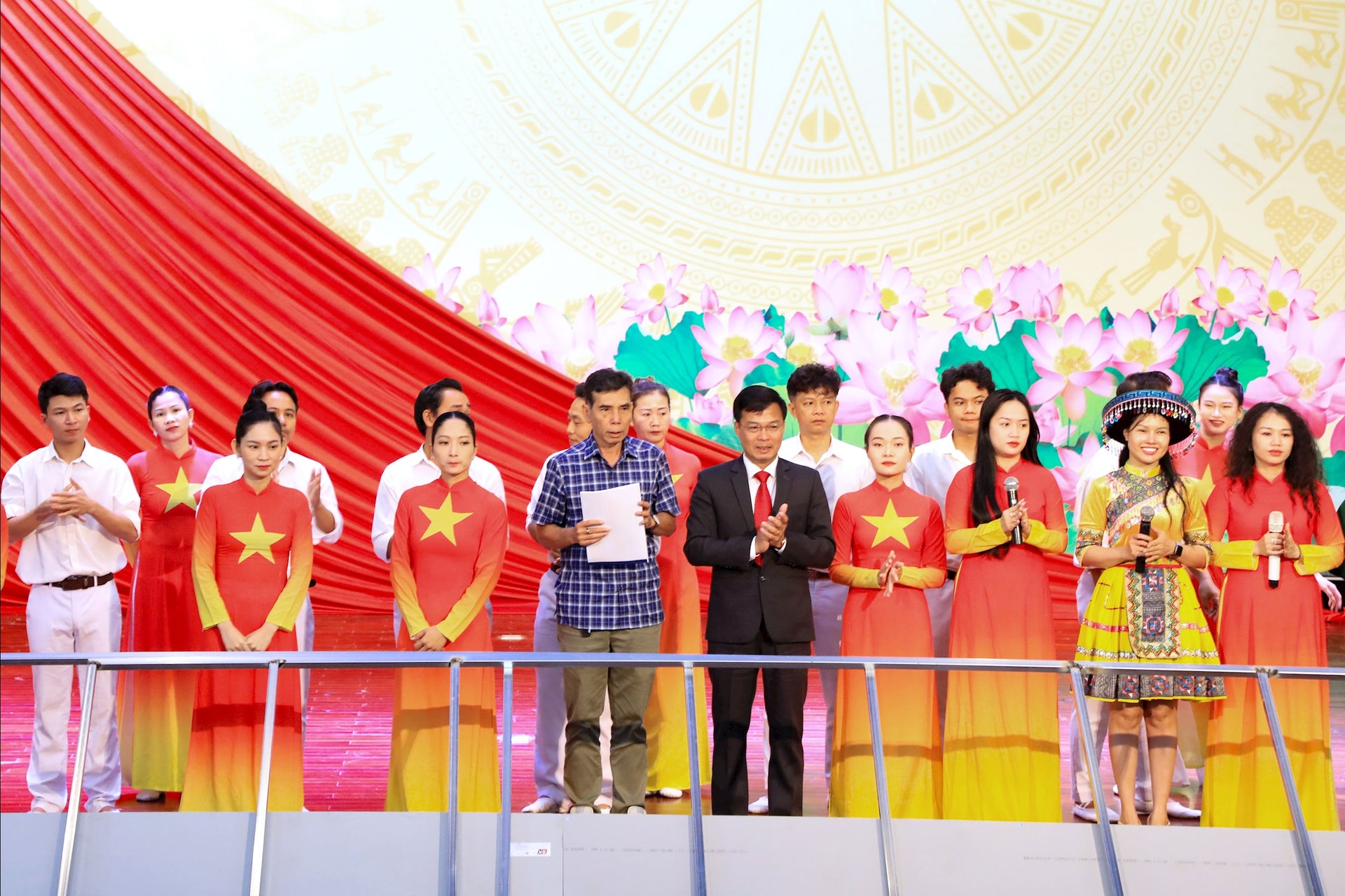 Phó Chủ tịch UBND tỉnh Lâm Đồng Đinh Văn Tuấn tham gia duyệt cùng đội văn nghệ