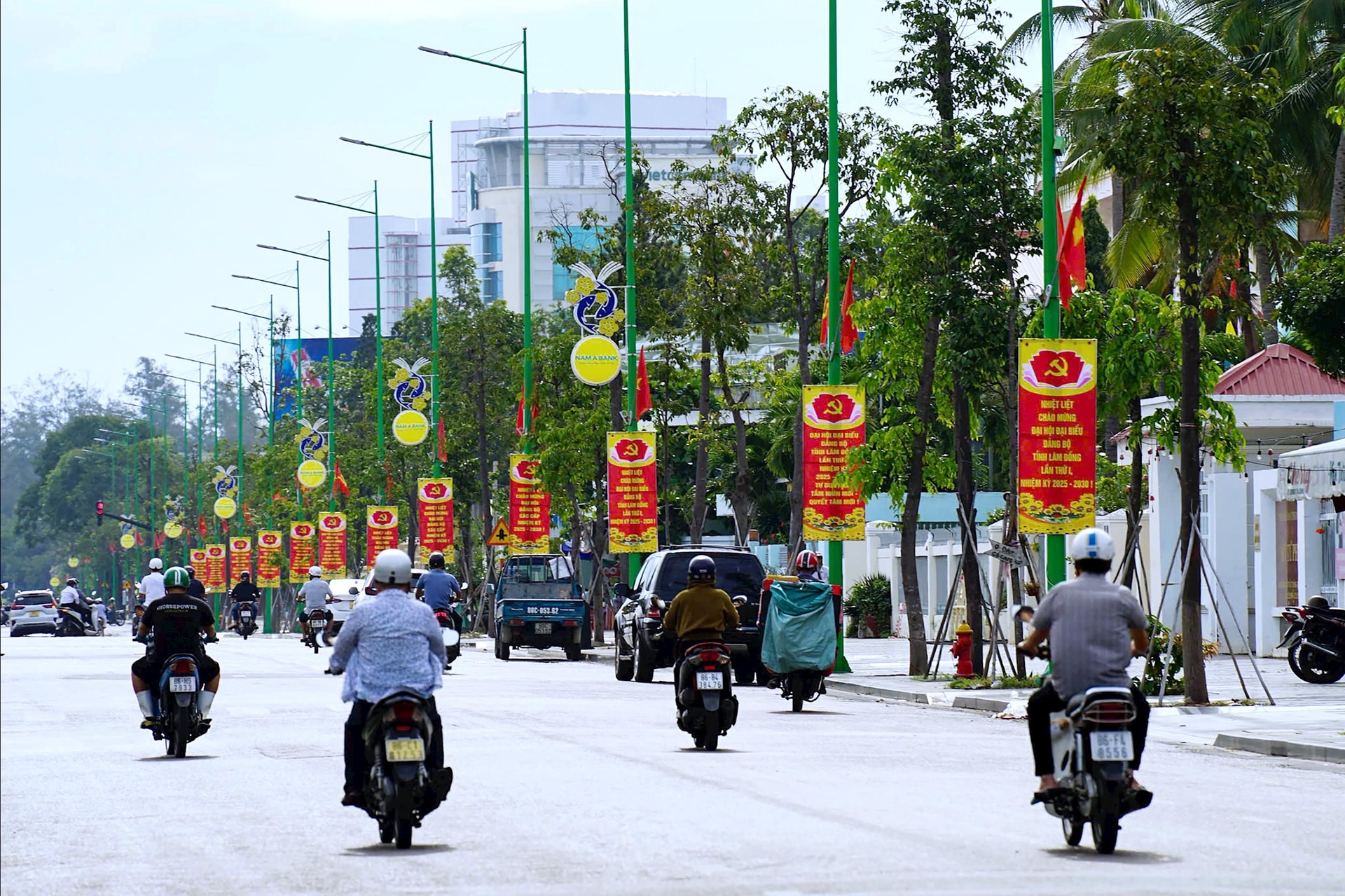 Nhiều tuyến đường lớn ở Phan Thiết được trang hoàng trước Đại hội