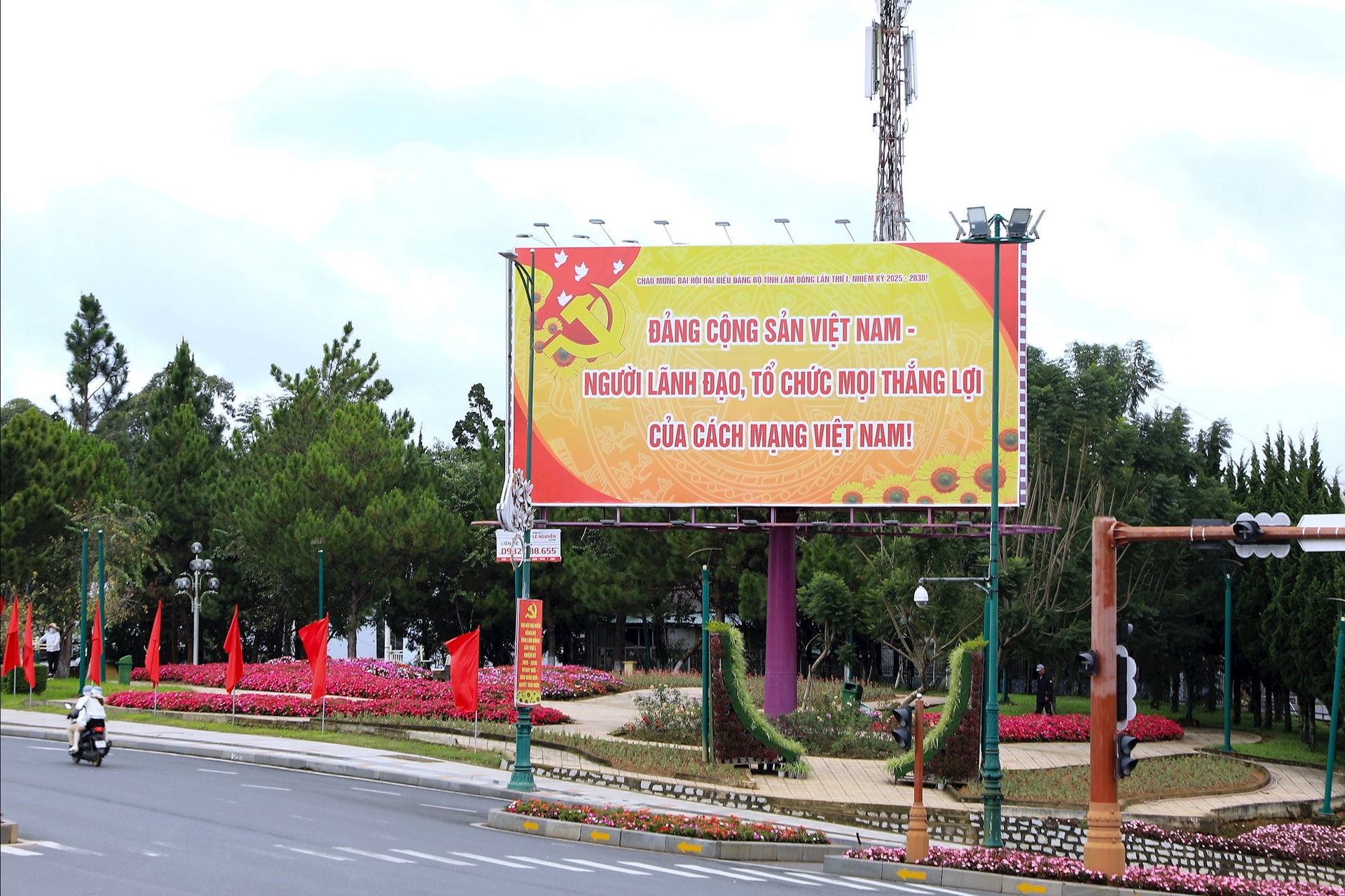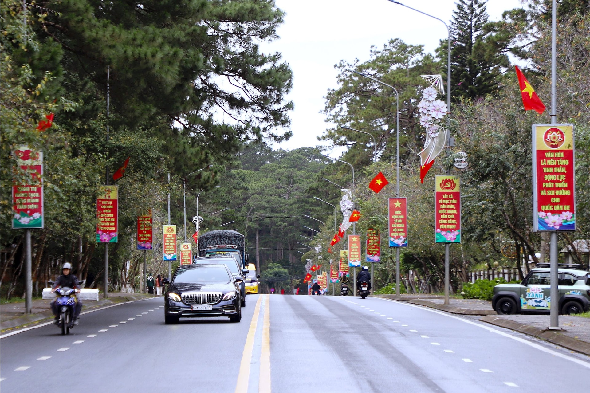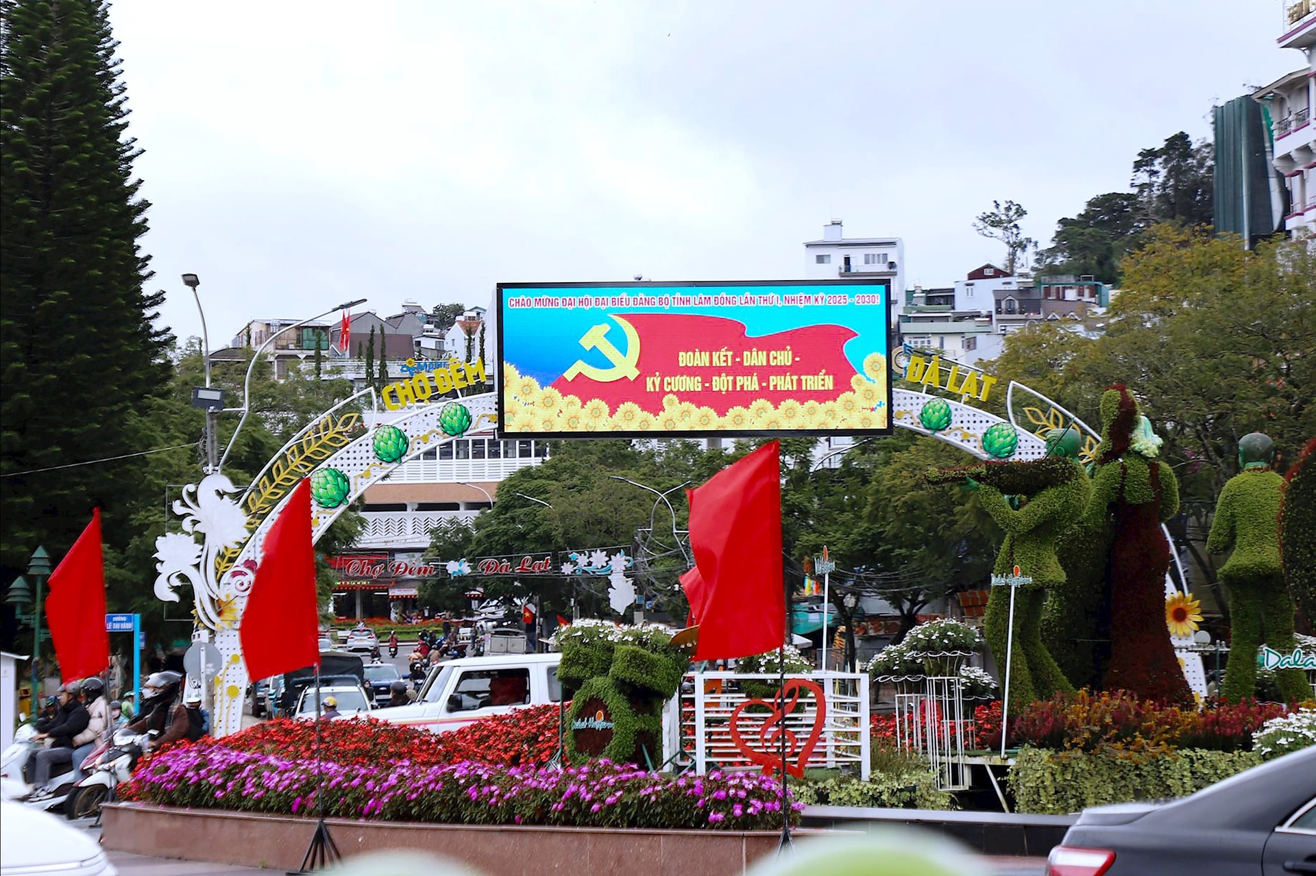 Trên nhiều trục được chính Đà Lạt rực rỡ cờ, hoa, khẩu hiệu chào mừng Đại hội