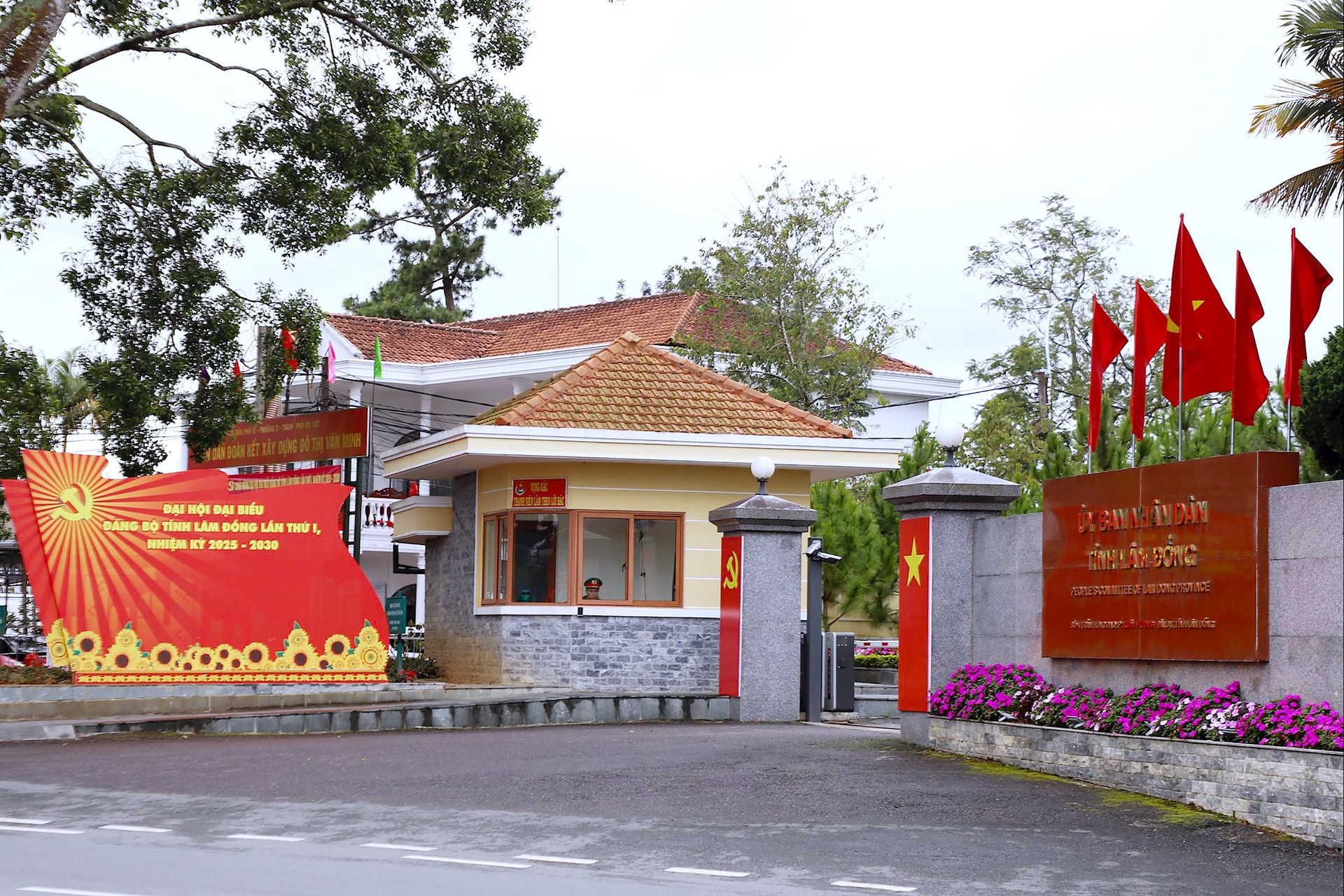 Trụ sở UBND tỉnh Lâm Đồng được trang hoàng cờ hoa chào mừng Đại hội