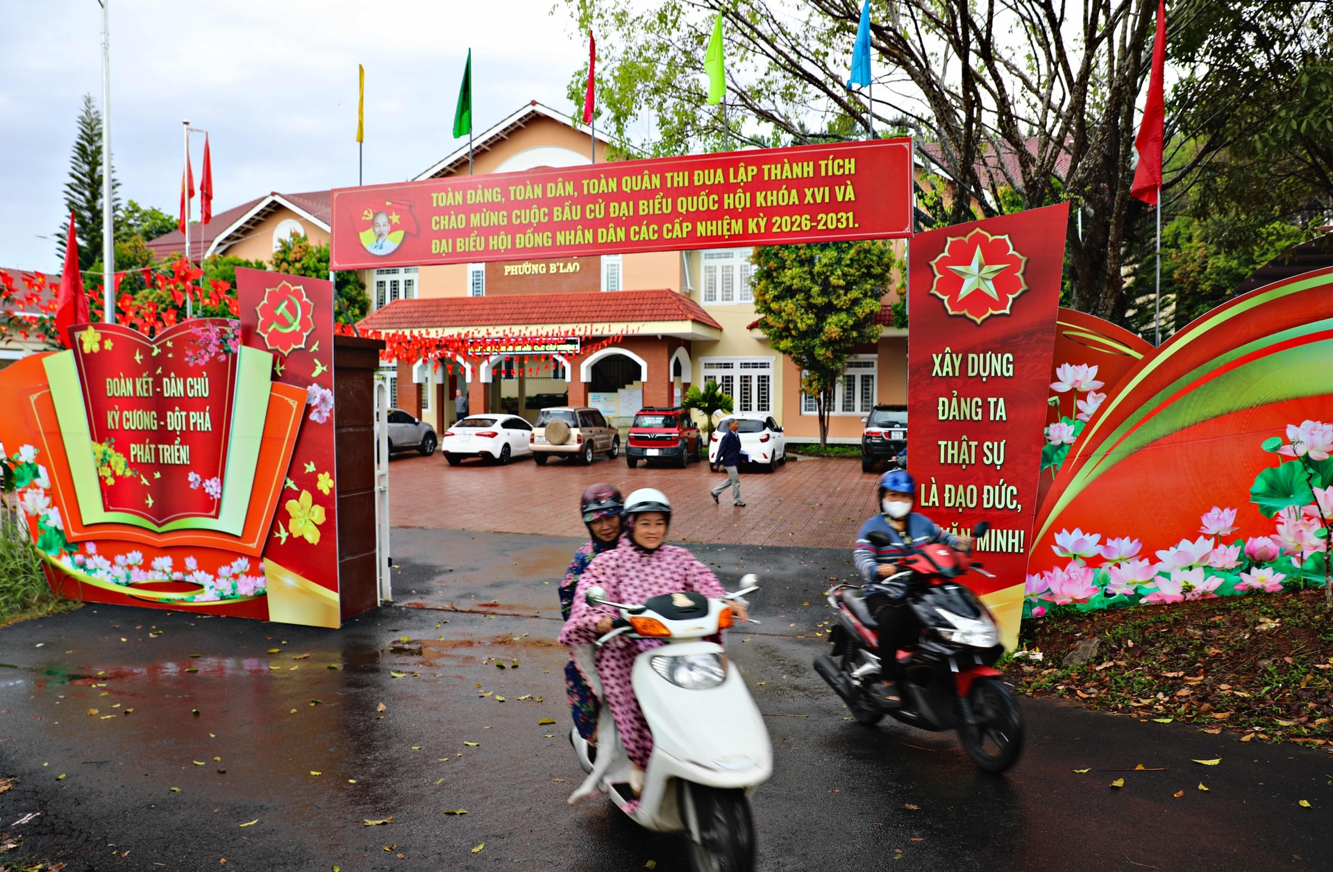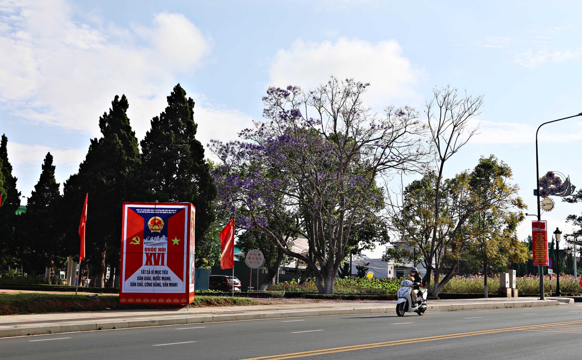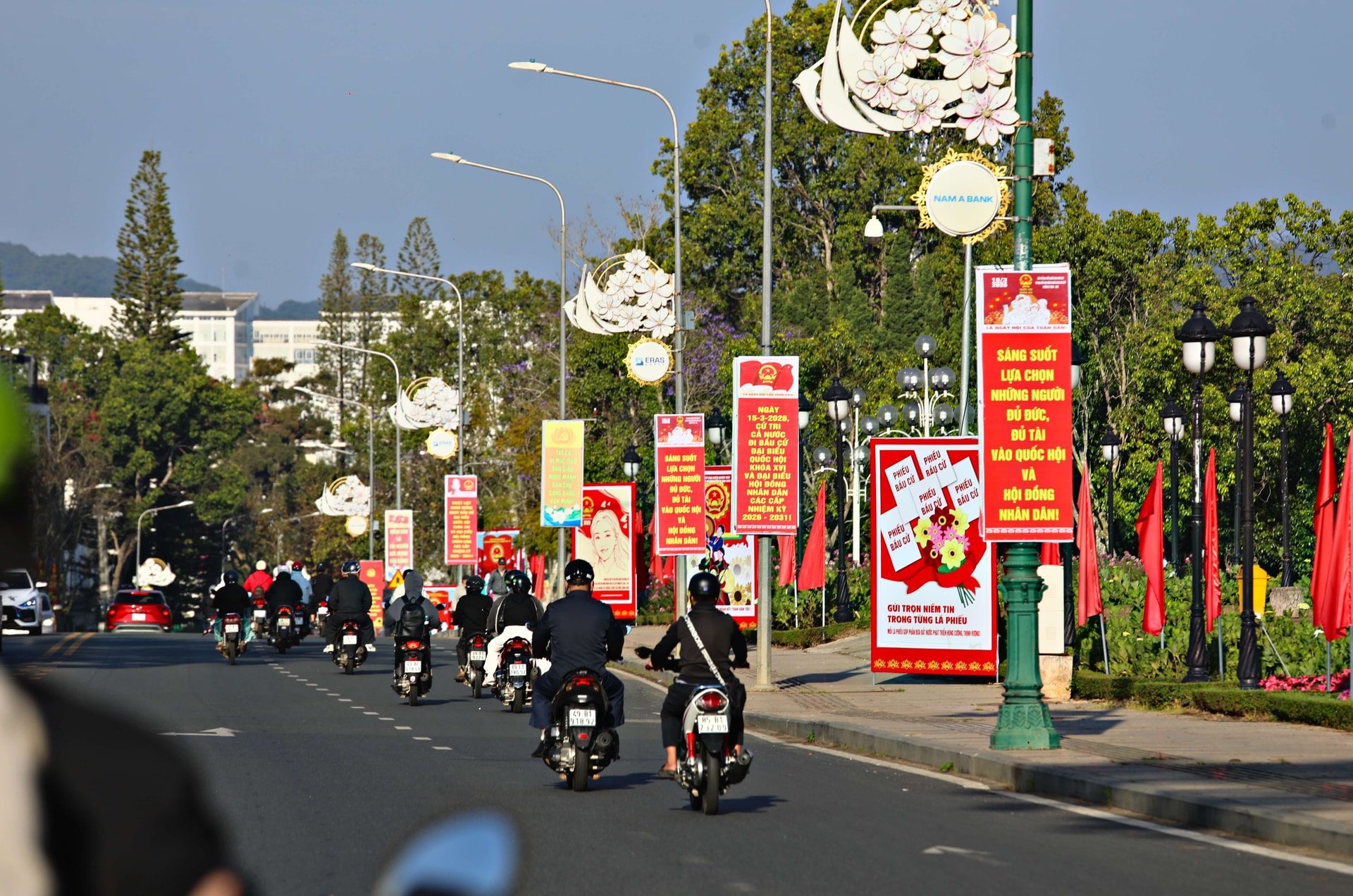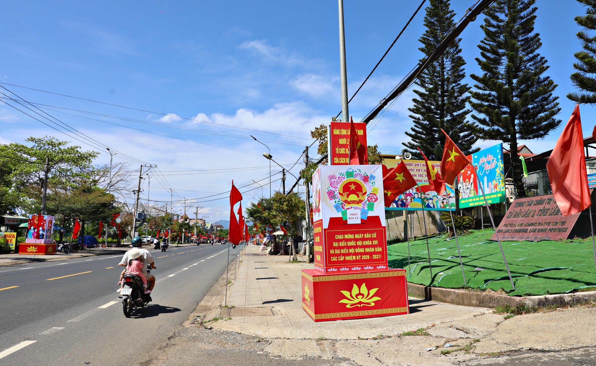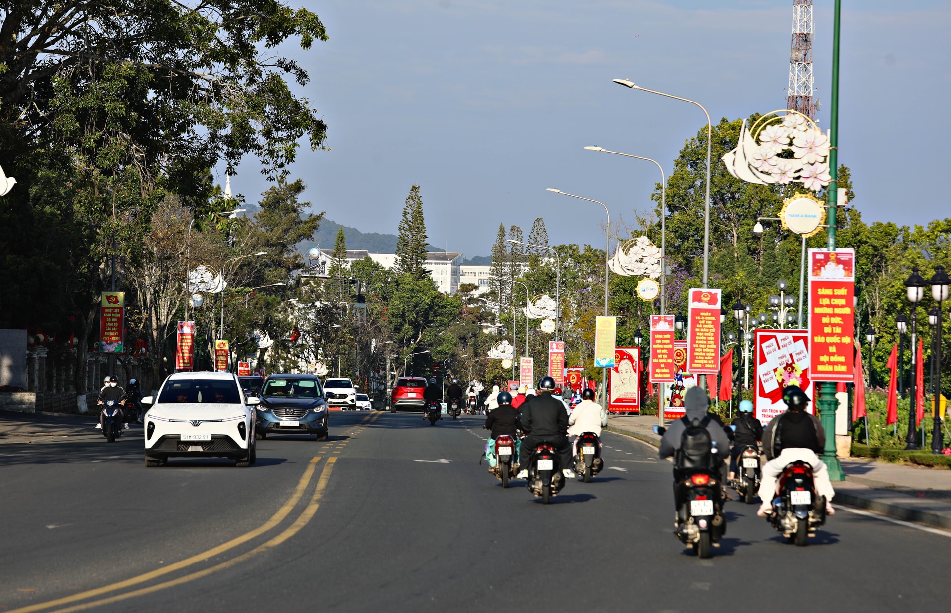 Tại khu vực trung tâm hành chính Đà Lạt, không khí chuẩn bị cho ngày bầu cử đã trở nên rộn ràng từ nhiều ngày trước. Trên các tuyến đường chính, cờ đỏ sao vàng được treo trang trọng dọc theo các tuyến đường, trước trụ sở cơ quan, đơn vị và nhà dân.