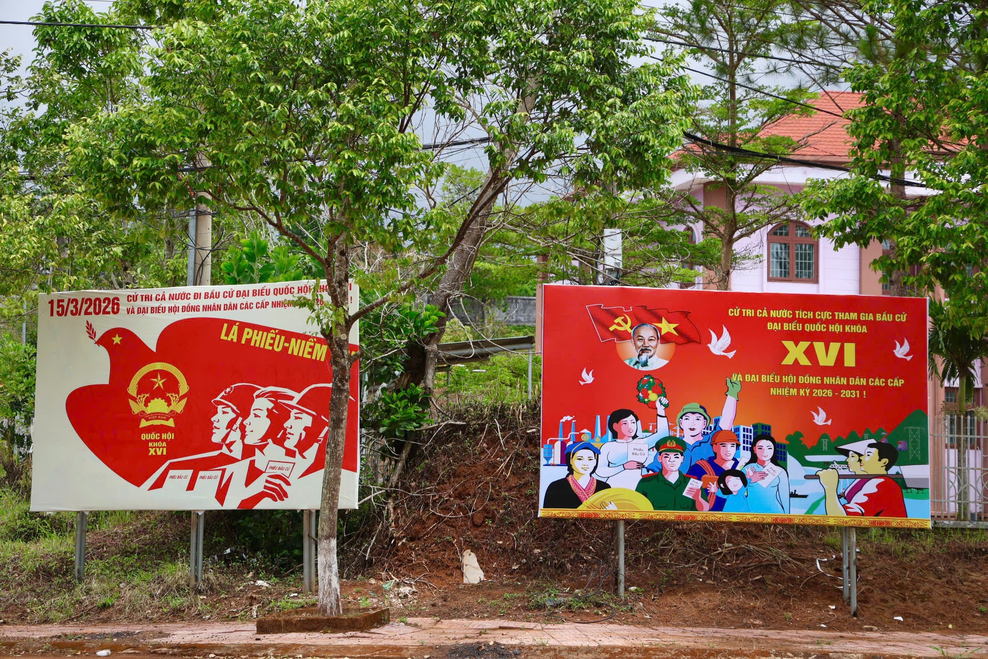 Pano tuyên truyền ngày bầu cử tại khu vực trụ sở Tỉnh ủy Lâm Đồng