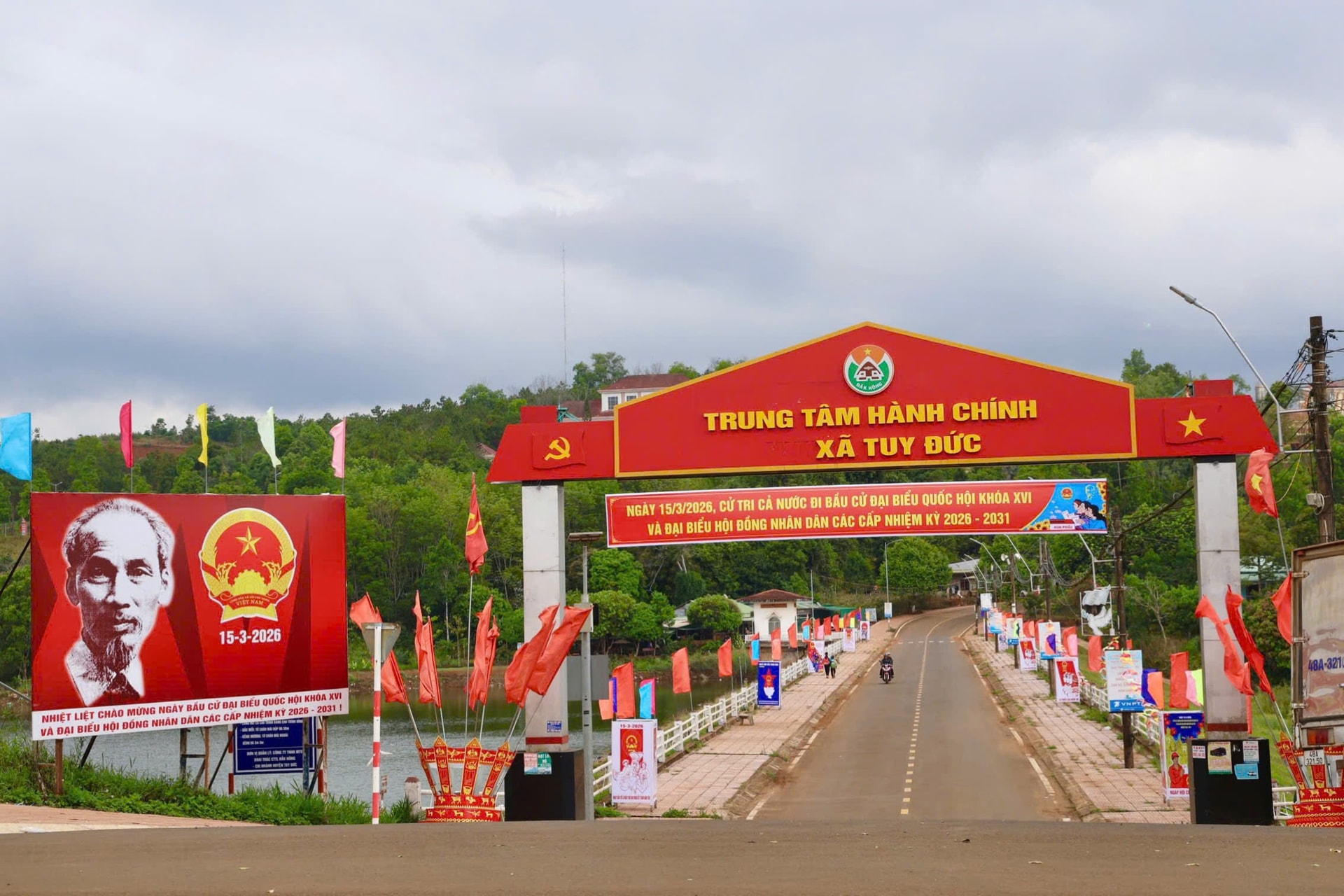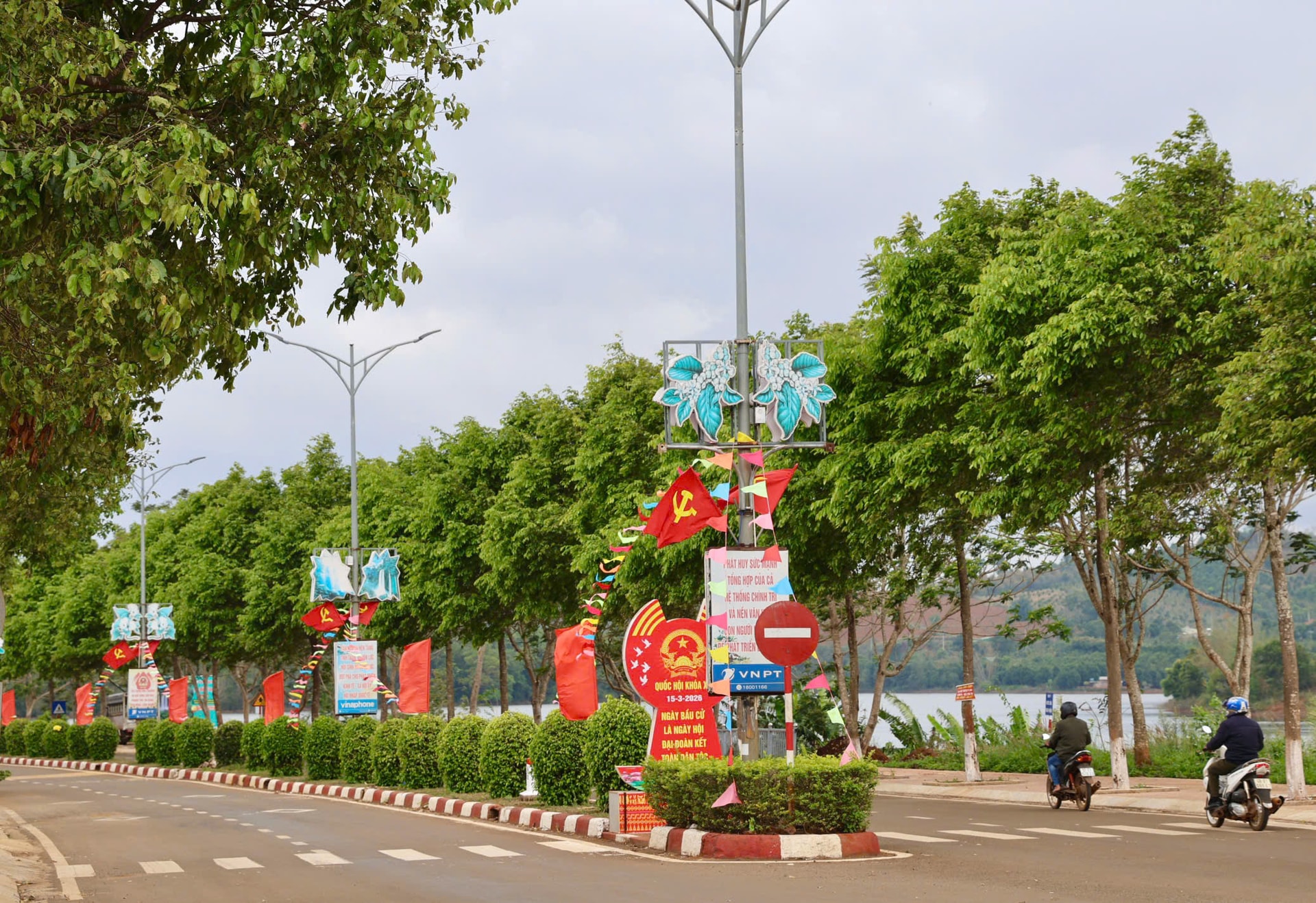 Tại khu vực Gia Nghĩa, không khí chào mừng ngày bầu cử cũng lan tỏa mạnh mẽ từ trung tâm thành phố đến các khu dân cư, thôn bản. Những tuyến đường chính được trang hoàng bằng hệ thống cờ phướn nhiều màu sắc, xen lẫn với những khẩu hiệu tuyên truyền nổi bật. Các khu vực quảng trường, trụ sở cơ quan, trường học và nhà văn hóa đều được chỉnh trang sạch đẹp, sẵn sàng cho ngày hội lớn.