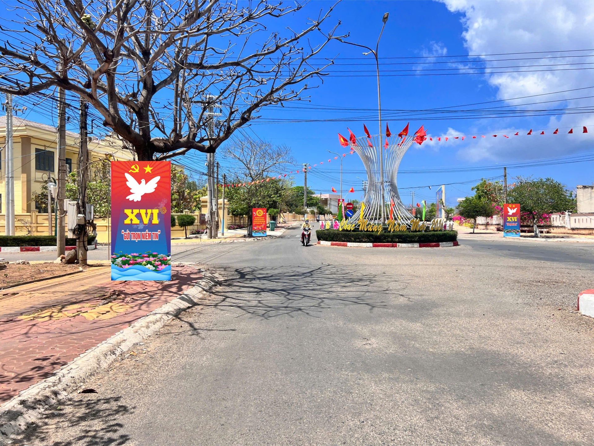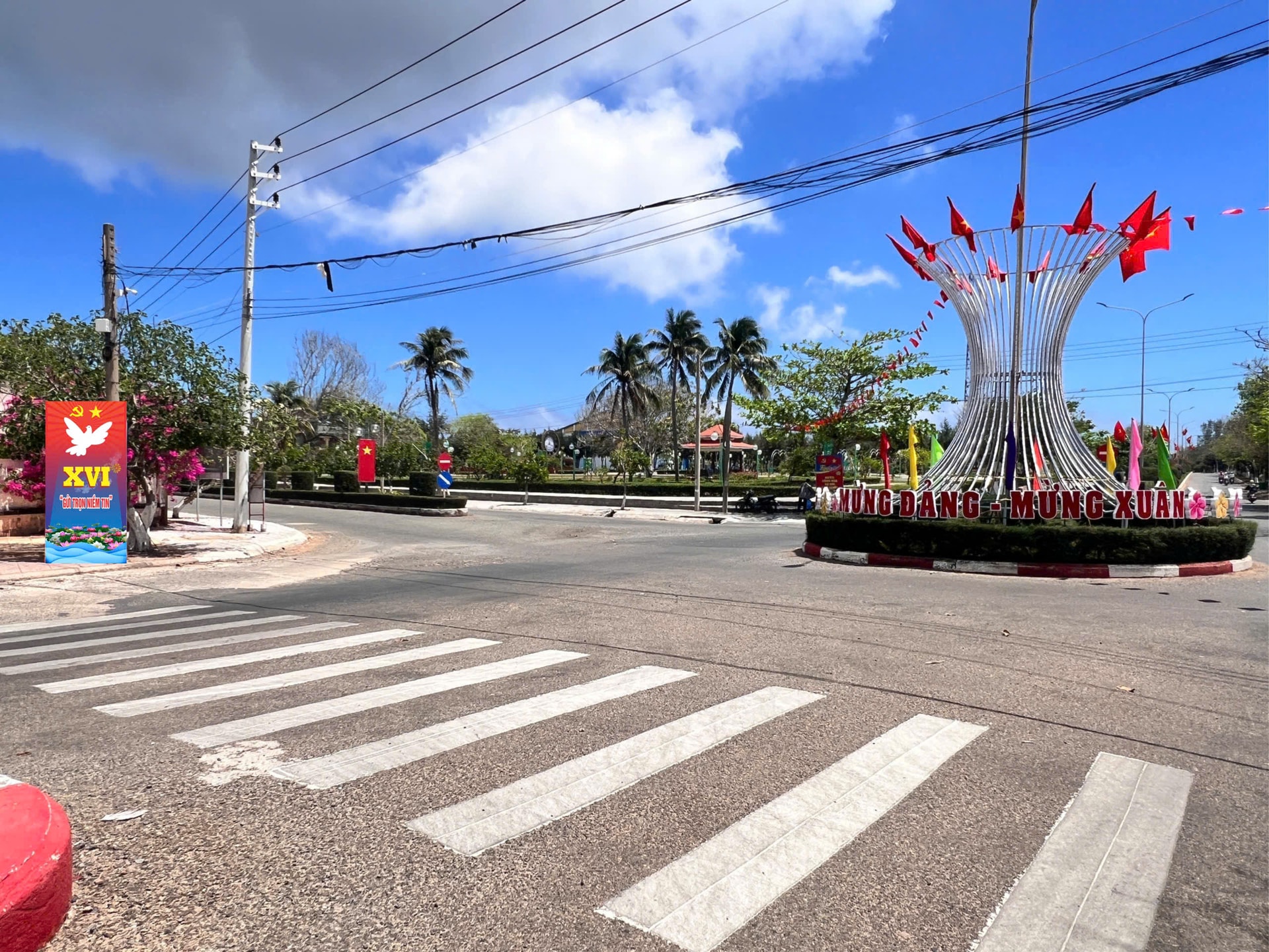 Các tuyến đường tại đặc khu Phú Quý đẹp hơn với cờ và áp phíc tuyên truyền ngày bầu cử